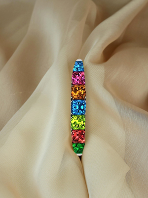 with your choice of 1 to 7 Asscher Cut Simulated Birthstones that measure 3x3mm each and set in your choice