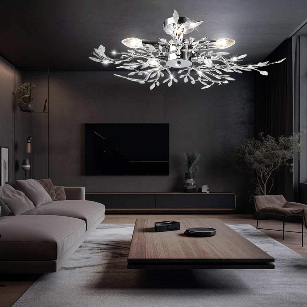 Deckenleuchte Deckenlampe Floral Design Blätter Geäst Chrom silber 71 x 16 cm