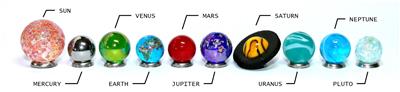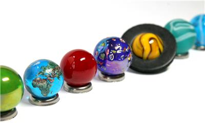- A stunning set - Our Solar System represented in 10 vibrant marbles depicting the planets including accurate Earth with continents and ice caps. The largest marble in this set is the sun at 22mm diameter, the other marbles ranging between 14-16mm diameter.