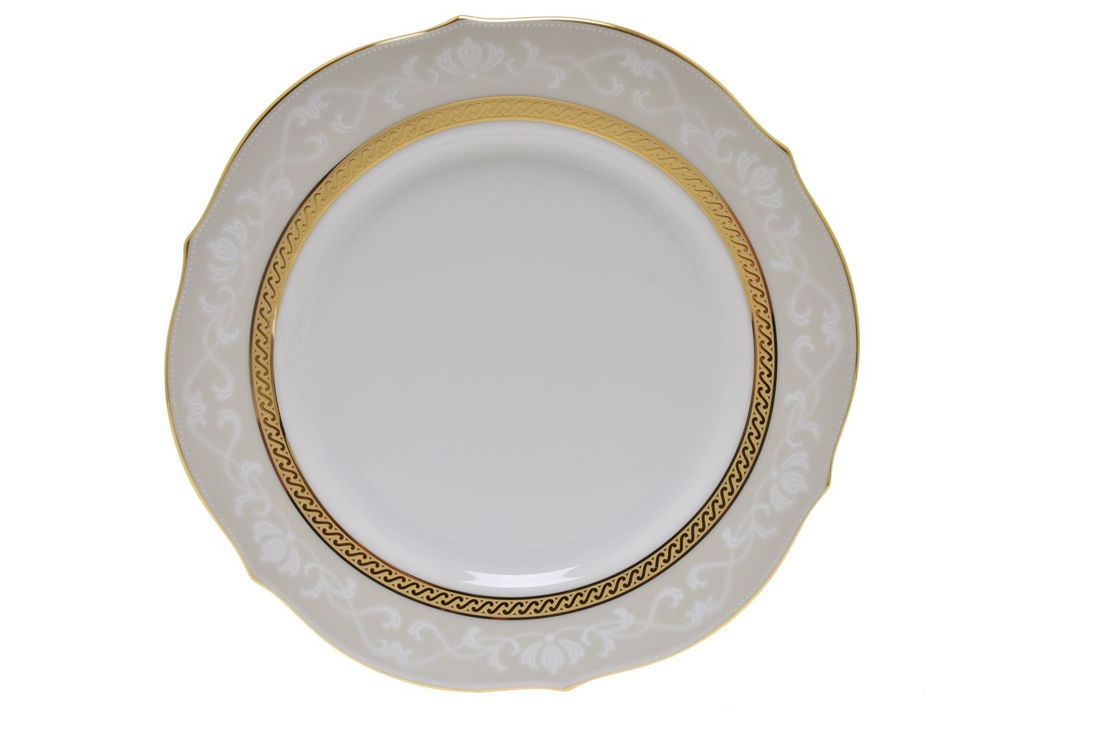This plate from Noritake is manufactured from white fine china porcelain, with a 24K embossed gold trim.