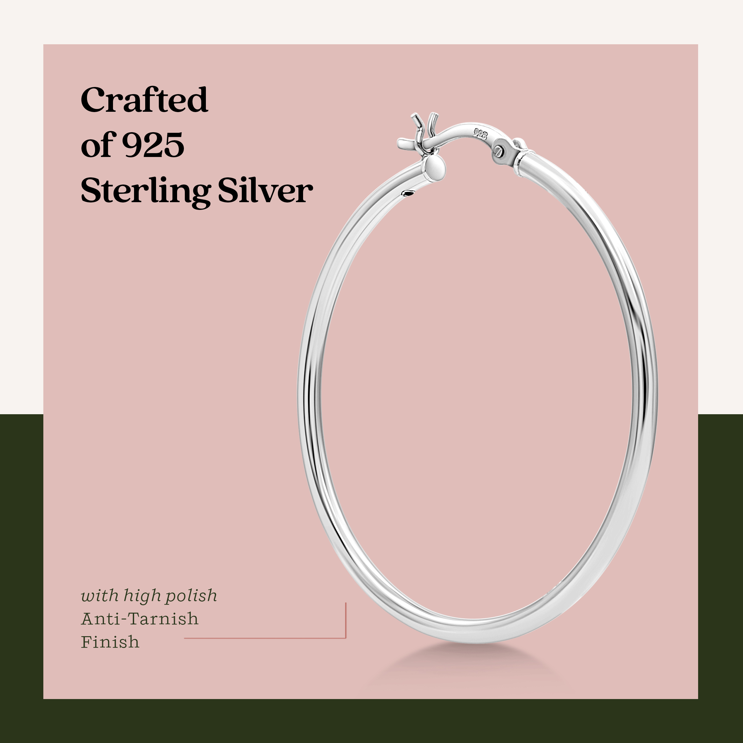 925 Sterling Silver 2.5mm Hoop Earrings High Polished - 40mm (1 1/2") diameter