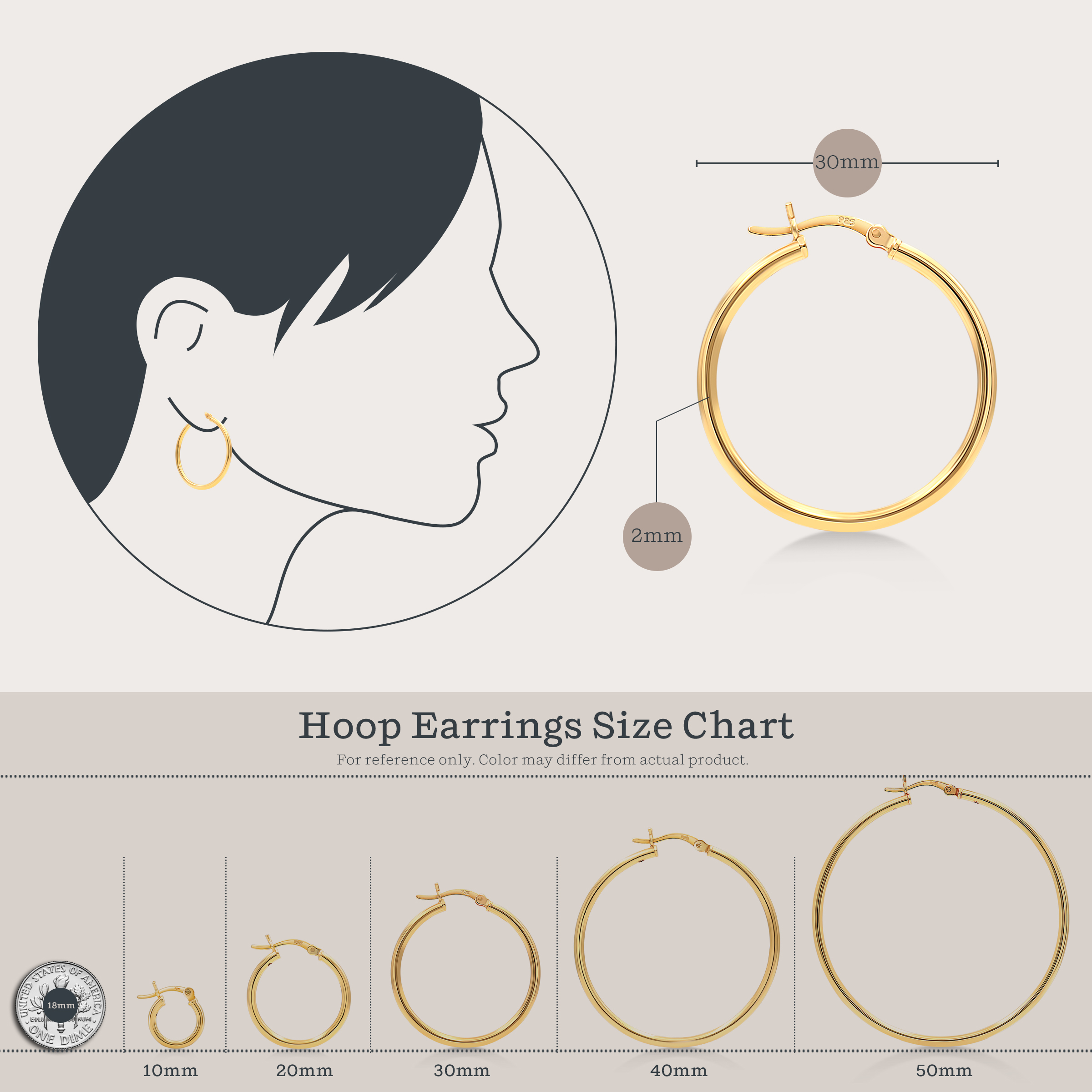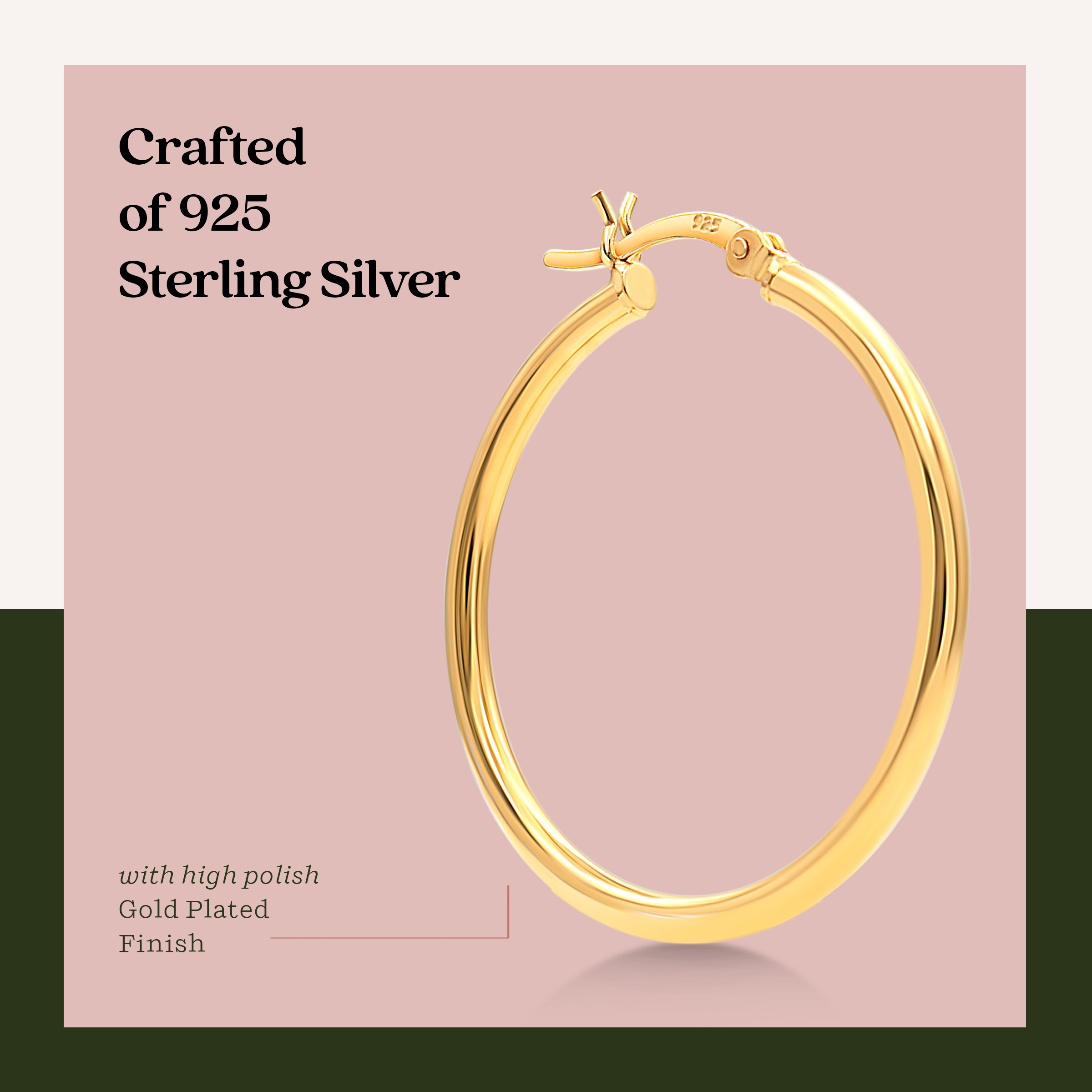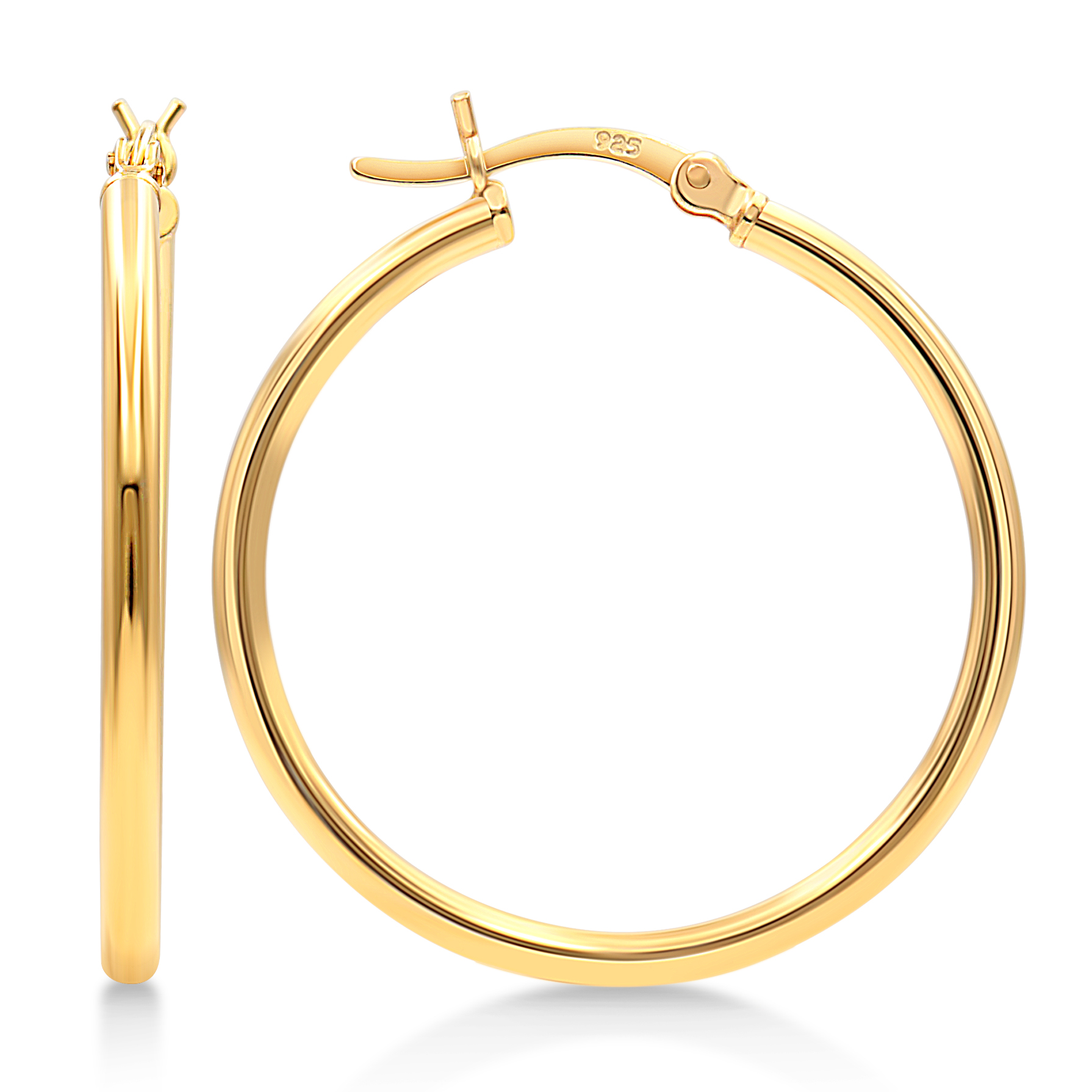 Gold Plated Sterling Silver 2mm Hoop Earrings - 30mm (1 1/4"") Diameter