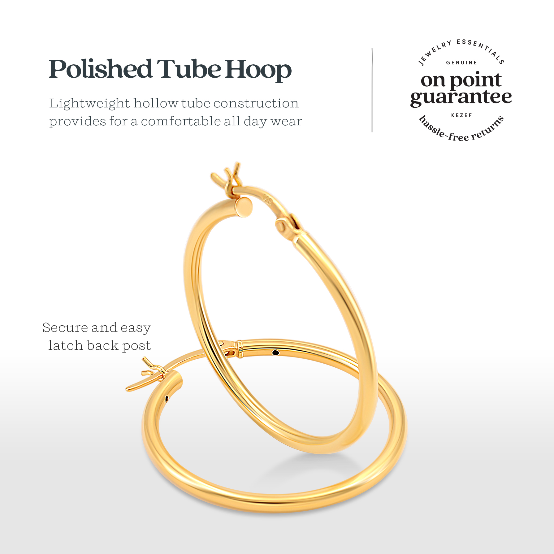 An all time classic, the 14k yellow gold plated earrings are finished with a high polish. These tube hoop earrings are available in many sizes. The click top closure ensures it will fit securley. Kezef hoop earrings are a delightful addition to any wardrobe.