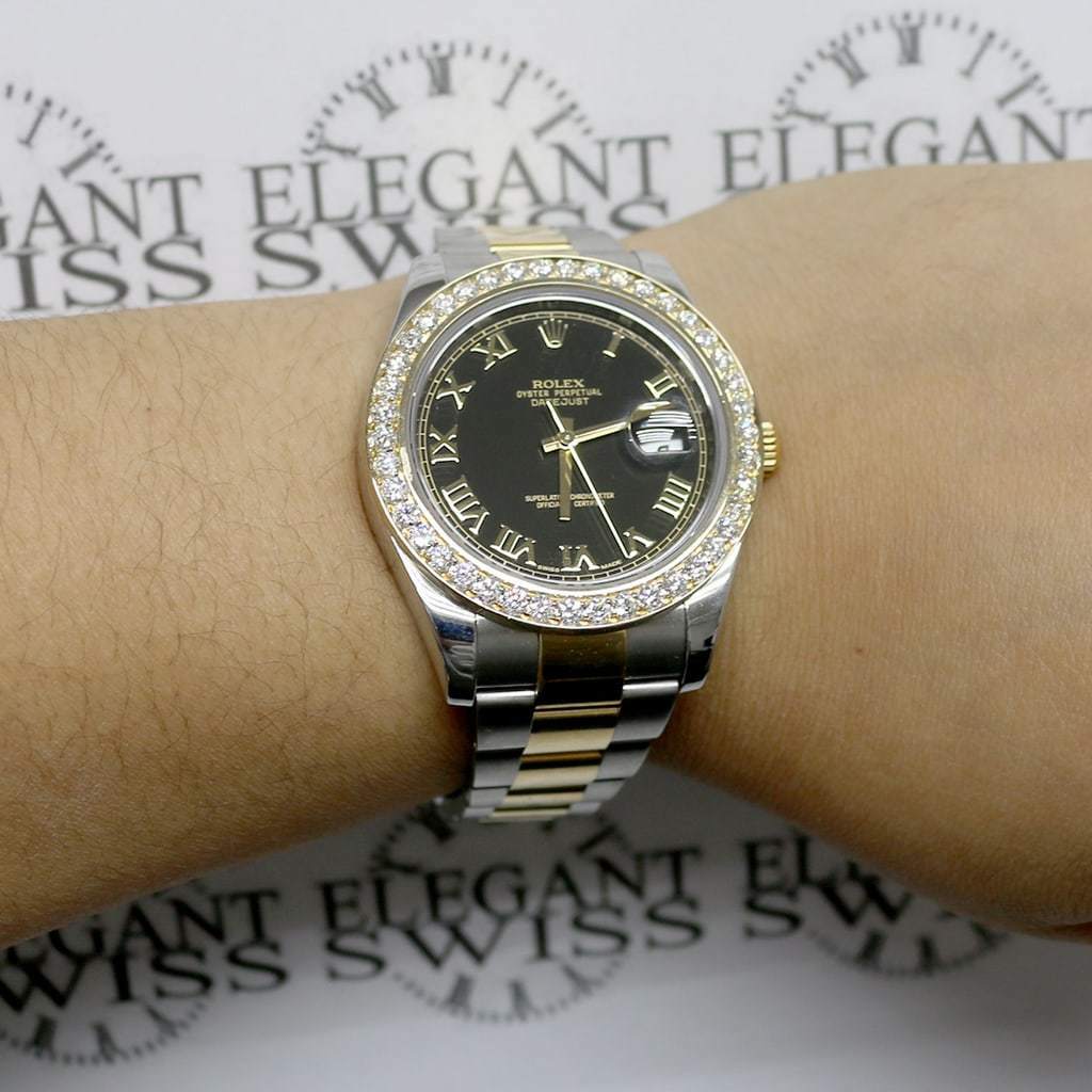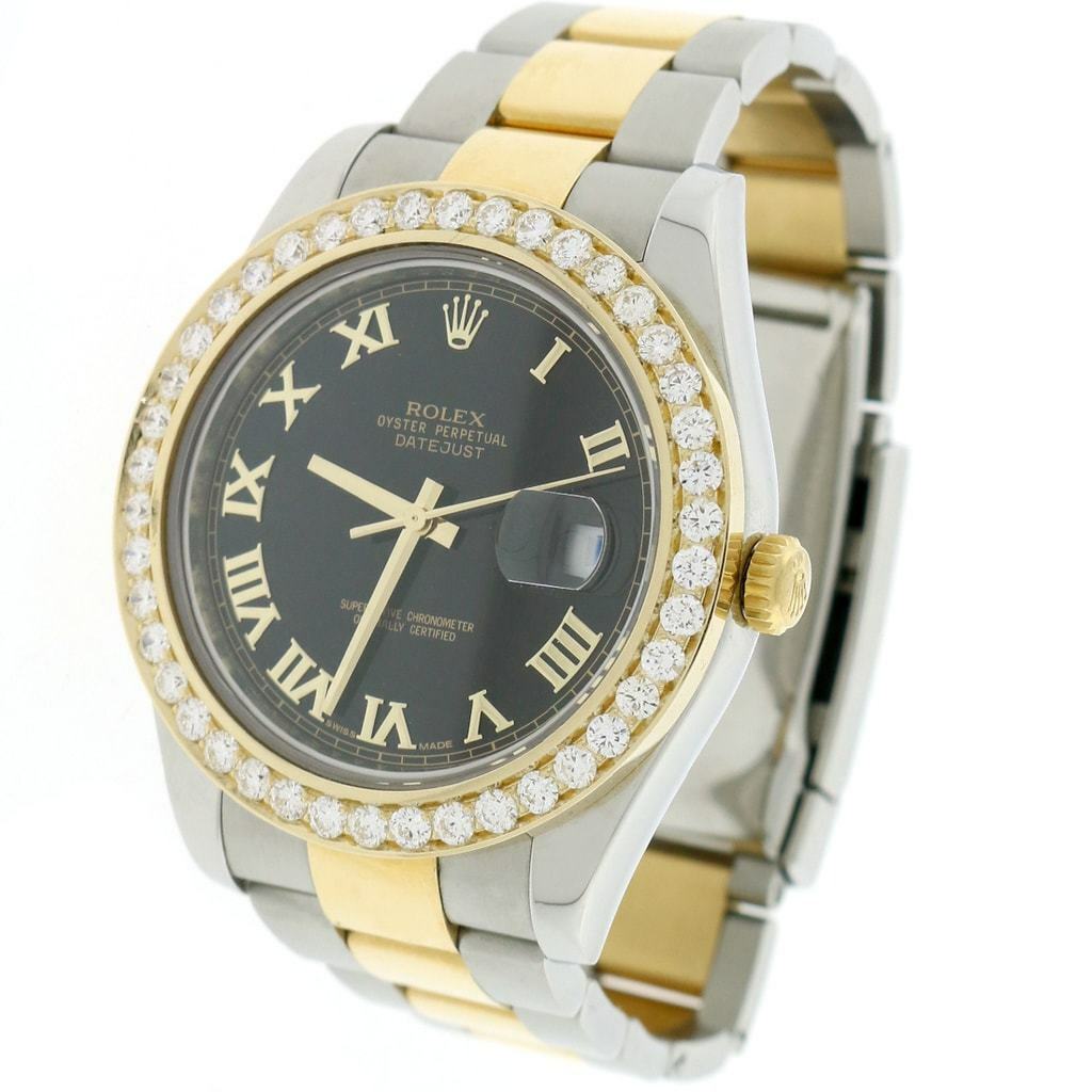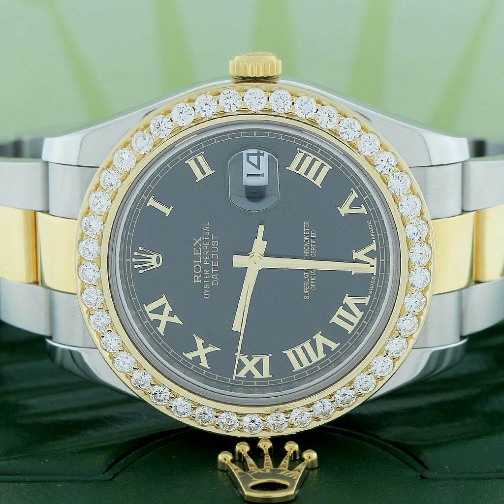 Rolex Datejust II 2-Tone Black Roman 41MM 116333 w/3.07Ct Diamond Box Papers