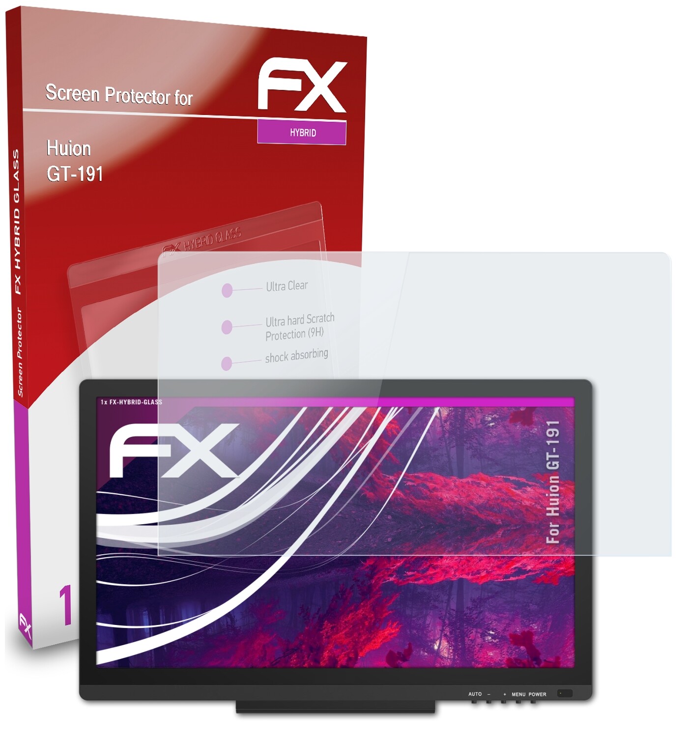 Ottica + effetto: FX-Hybrid-Glass Pellicola Protettiva in Vetro assicura un'ottima look-and-feel del vostro Huion GT-191 Displays. Insieme all'alto tasso di trasmissione della luce del quasi il 98% questa protezione dello schermo è praticamente invisibile.