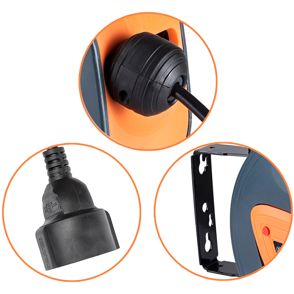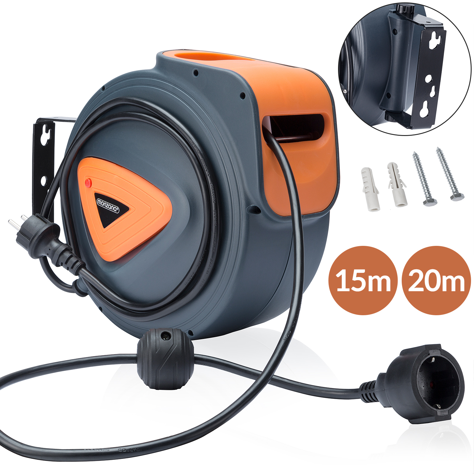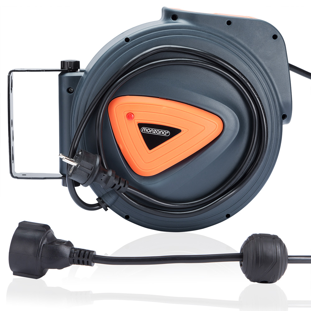 Mit dieser Automatik-Kabeltrommel sorgen Sie für Ordnung. Dank der Wandhalterung lässt sich die Kabeltrommel ganz einfach montieren und flexibel um 180° drehen.