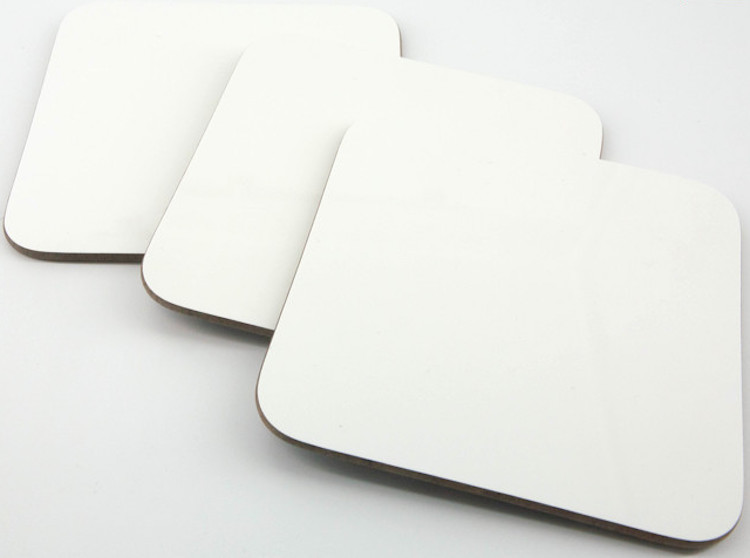 This has a MDF core, and rounded corners. The image on the coaster is sublimated on using a special coating and inks and paper, so it's very durable, and can be wiped clean with a damp cloth.