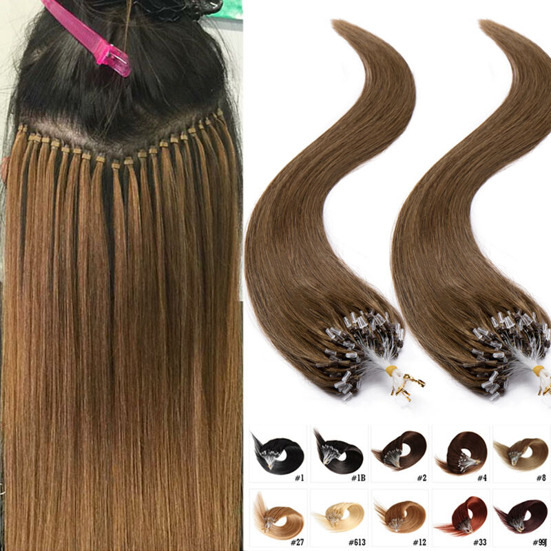 Straight Loop Micro Ring Hair 100% Human Micro Bead Links Machine Made Remy Hair Extension 18" 20" 22" 0.5g/s 50g