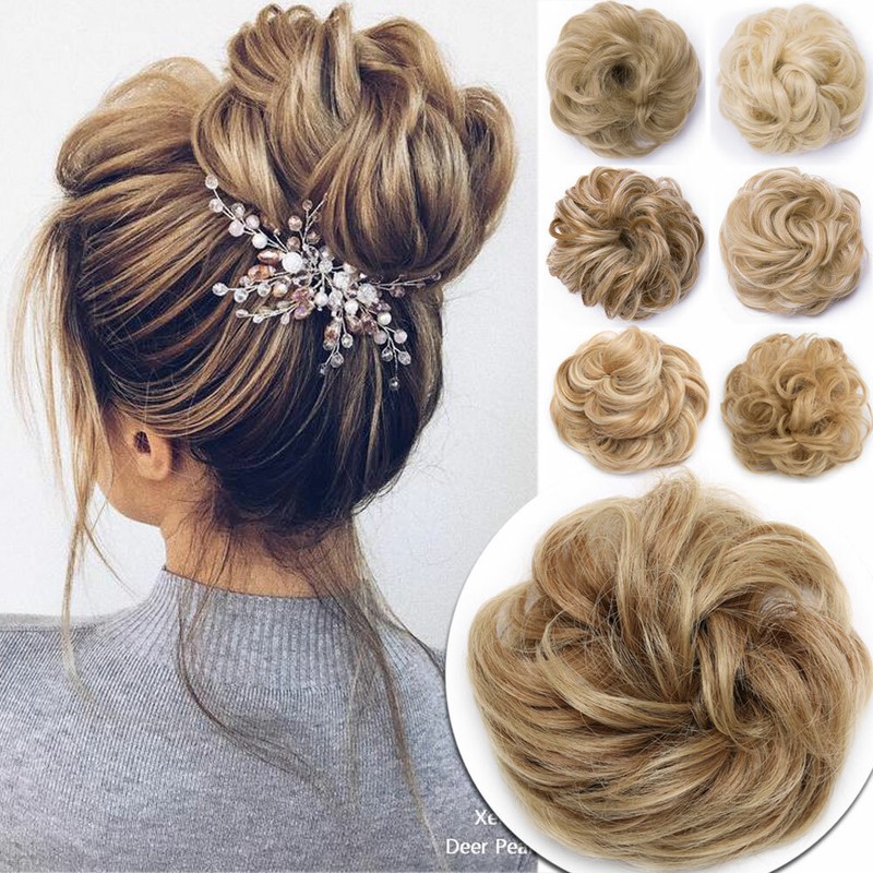 100% Real Natural Curly Messy Bun Hair Piece Scrunchie Thick Hair Extensions US
