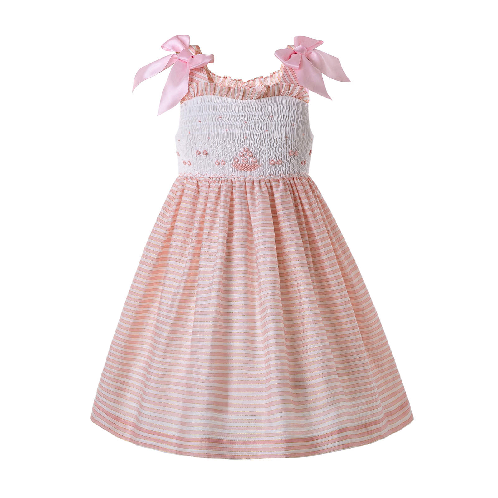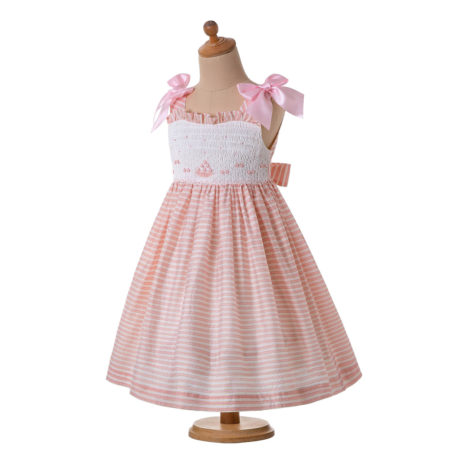 Striped Girl Handmade Smocked Dress Princess Formal Birthday Party Pageant Pink