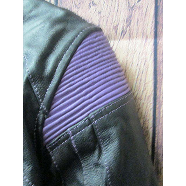 Solid black with purple stitching and trim