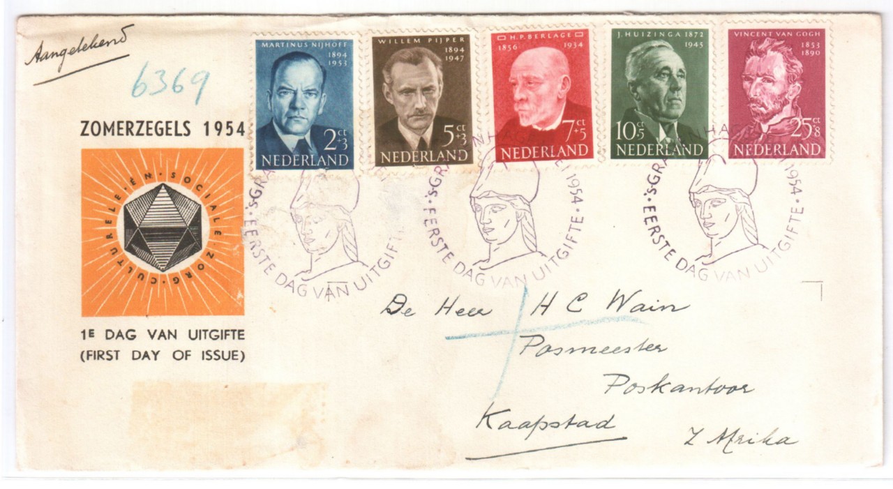 - 1954 First Day Cover from 'Gravenhage(The Hague) to Kaapstad(Cape Town), South Africa