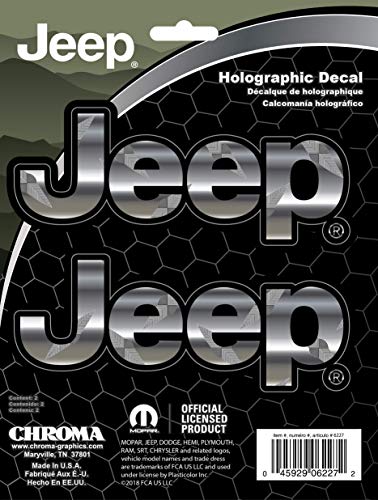 Chroma Graphics Jeep Logo is in a Chrome color with a tread pattern on it with a traditional silkscreened and airbrushed design.
