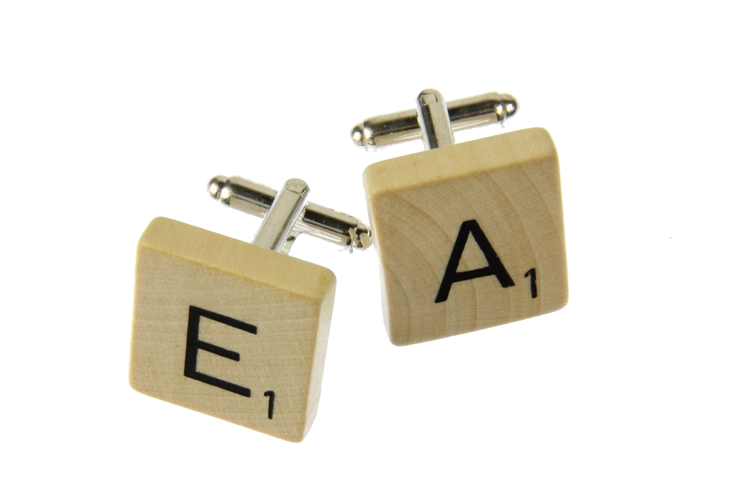 Wunderschöne Manschettenknöpfe aus original Scrabble Buchstaben aus Holz.