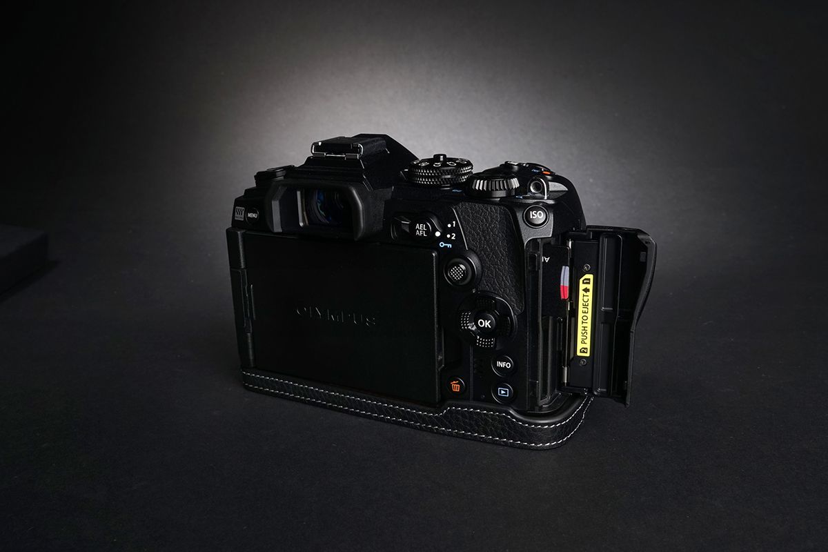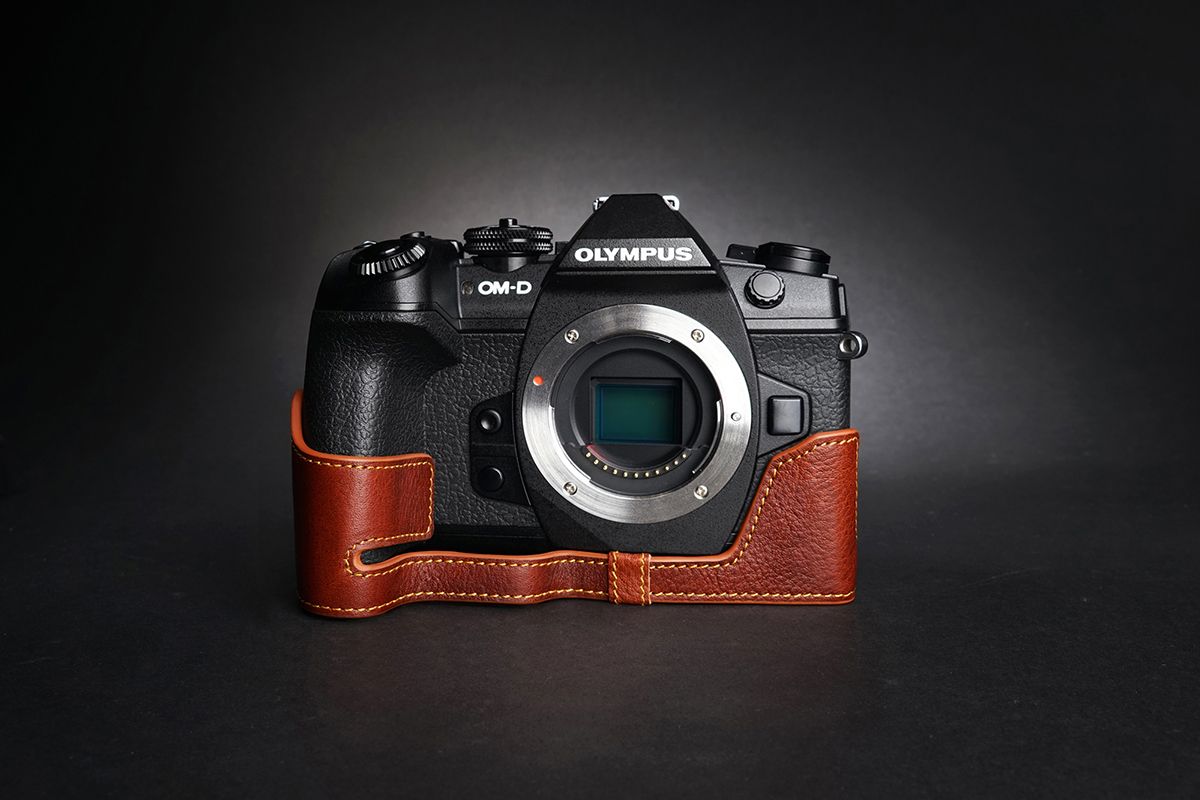- Handmade Vintage Genuine real Leather Half Camera Case bag cover for Olympus OM-D E-M1 Mark II and Mark III bottom open version (4 Colors).