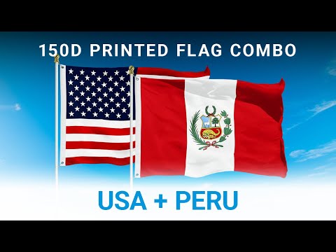 The Peruvian flag represents the South American country Peru and was adopted in 1950. This flag is a vertical bicolor triband of red, white, and red with the National Coat of Arms in the center white band. This combo pack is perfect for holidays like Independence Day, national holidays, parades or celebrations, everyday display, or as a gift for a loved one! (1) USA American Flag 3x5 Ft 150D Printed Stars Polyester and (1) Peru (Peruvian) Flag 3x5 Ft 150D Printed Polyester. The Peruvian flag represents the South American country of Peru. This combo is perfect for Independence Day, national holidays, special events, parades, everyday display, or as a gift for a loved one! The American flag and the Peruvian flag are BOTH made from 100% 150 Denier fabric while other market brands are made with less durable 75D. BOTH flags dye-sublimated for clear vivid bright colors. Imported. Flags fly in medium breeze. Fly ends are secured with FOUR rows of lock stitching to prevent ripping and tearing. Heavy duty polyester canvas heading with two strong solid brass grommets for easy hanging and display. Two (2) flags, BOTH large standard size 3x5 feet.