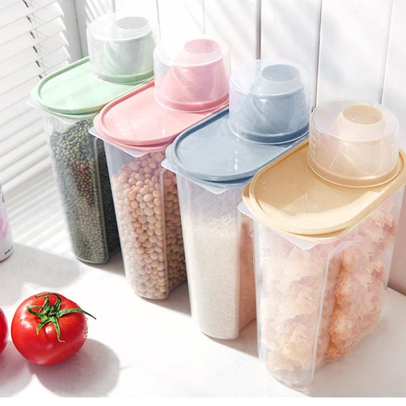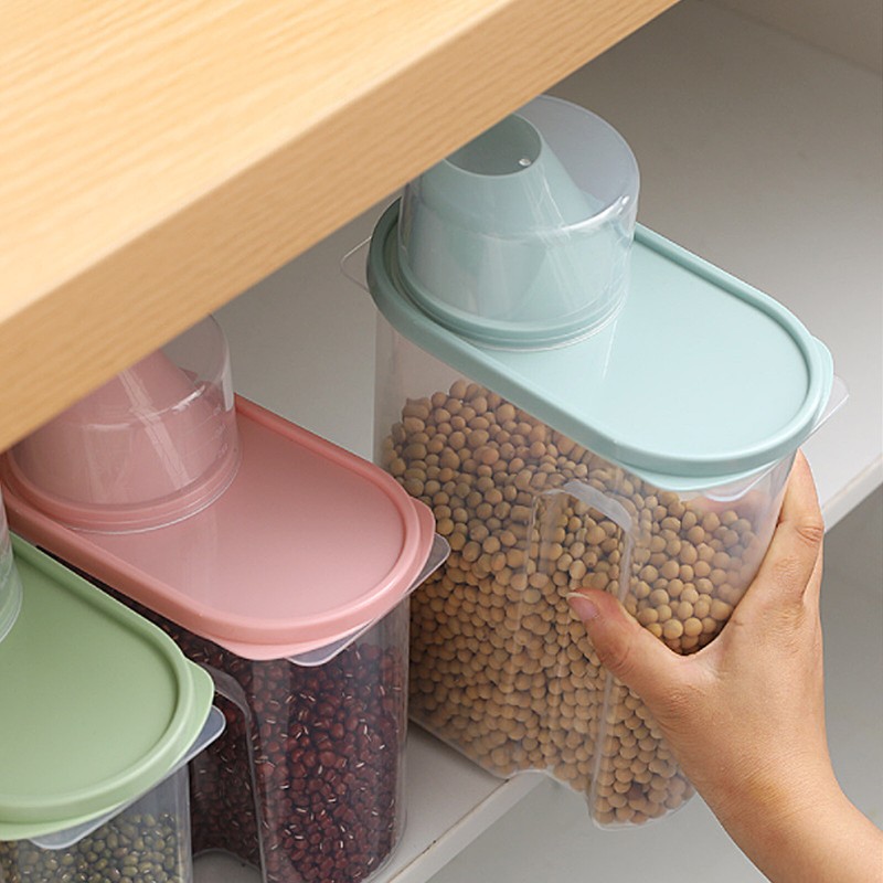 Keep food fresh, dry and completely sealed. You can use it to contain kitchen necessities such as flour, sugar, rice, nuts, beans, snacks, food, grains, coffee or tea.
