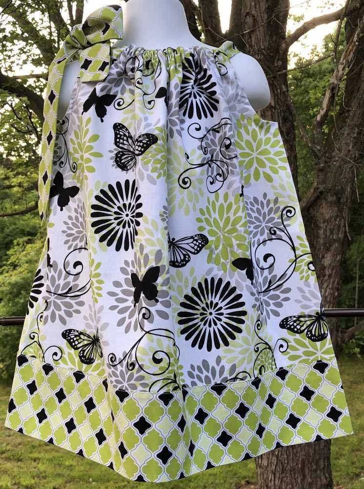 Butterfly Floral Burst Dress Black Gray Green Sundress Butterflies Pillowcase Handmade Sundress Toddler Girl Size 3T READY TO SHIP