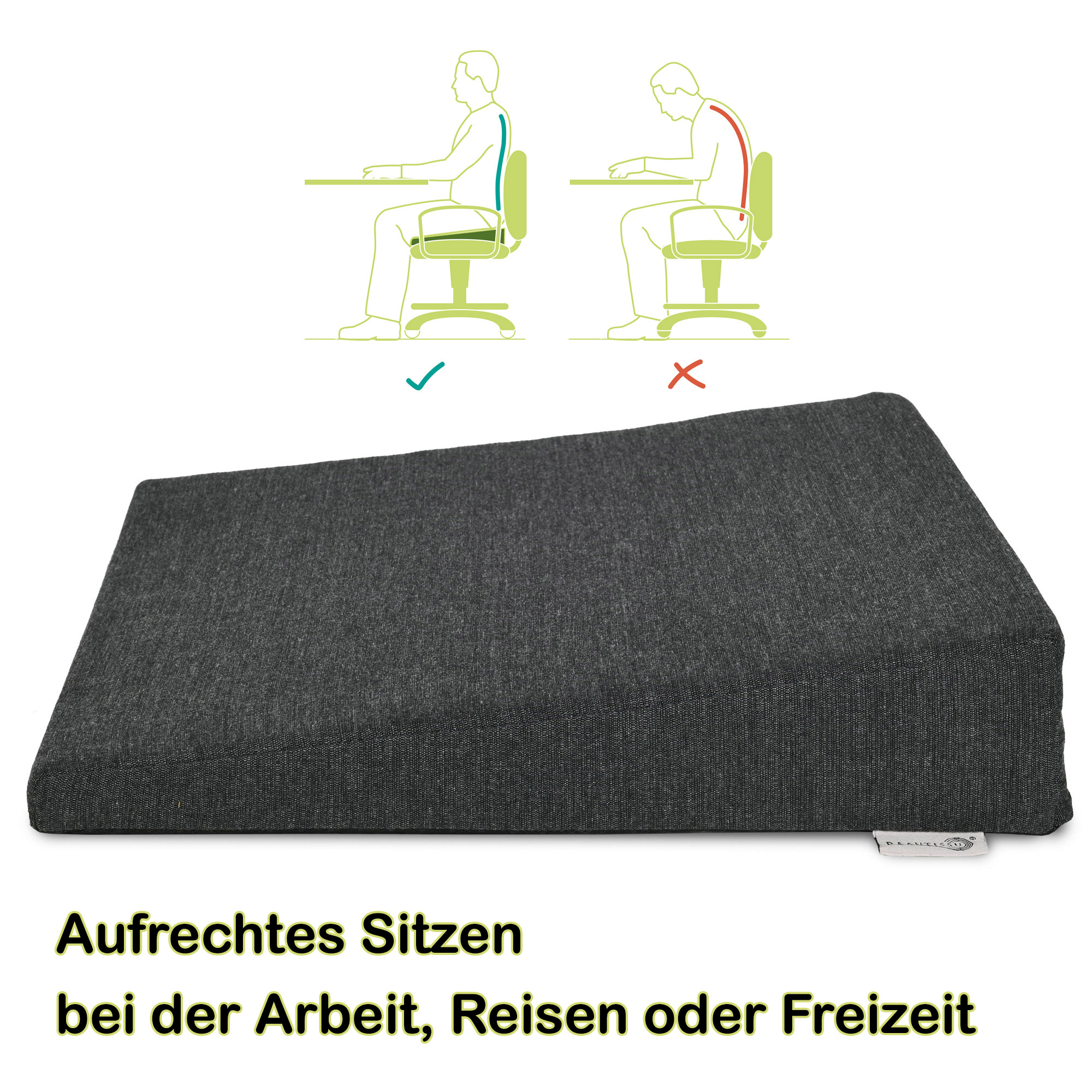Das Beautissu Sitzkeilkissen BeauErgo hilft ideal, dass Sie mit einem geraden Rücken sitzen und automatisch eine aufrechte Haltung einnehmen.