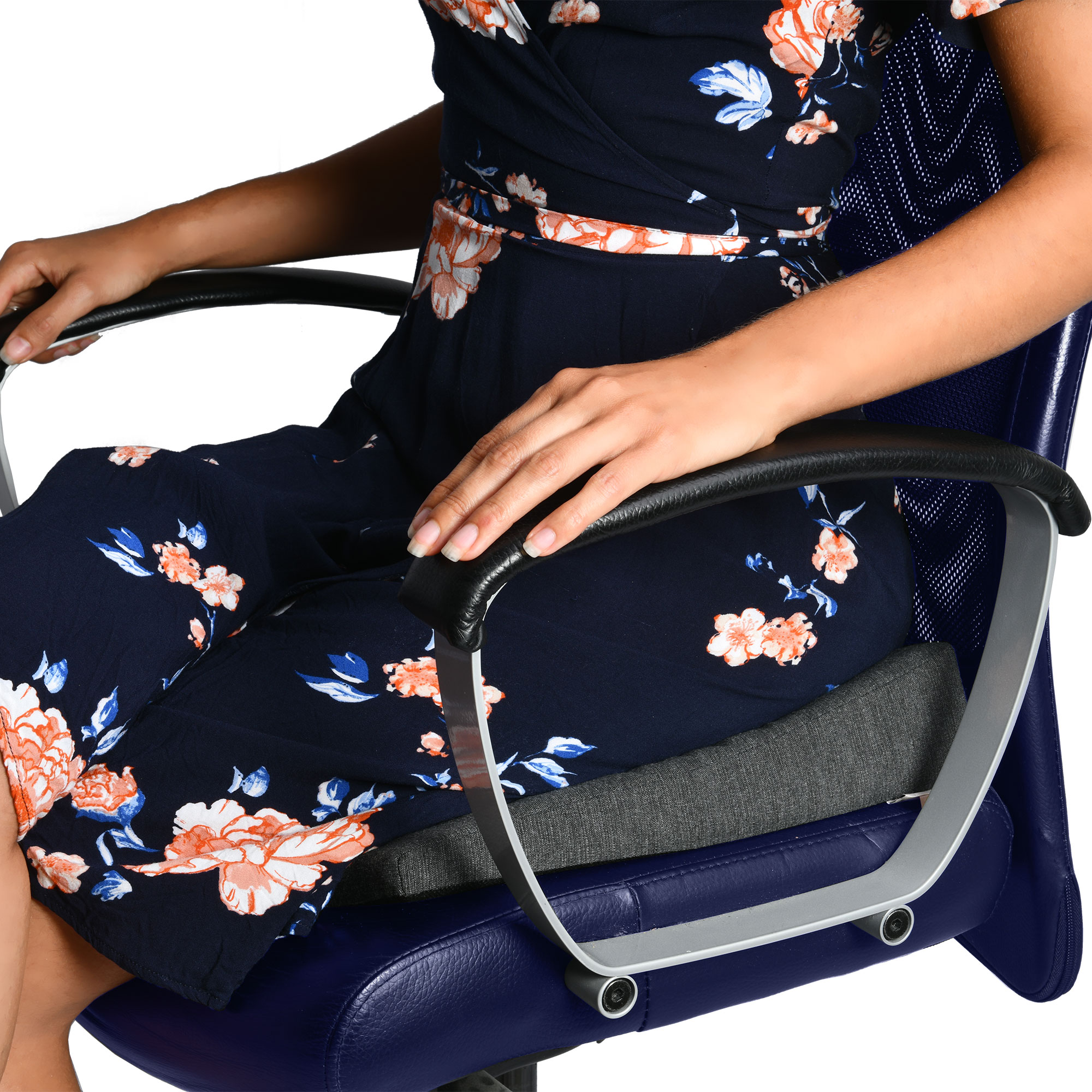 Das Beautissu BeauErgo Keilkissen wird einfach auf den Stuhl gelegt und die abgeschrägte Form sorgt für eine aufrechte Körperhaltung.