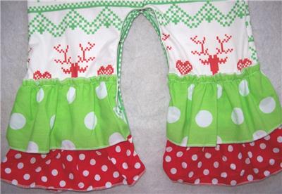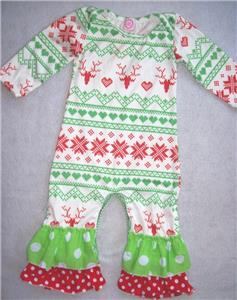A BOUTIQUE ~ISLA GRACE~ RUFFLED RED & GREEN CHRISTMAS ROMPER & HAIRBOW.