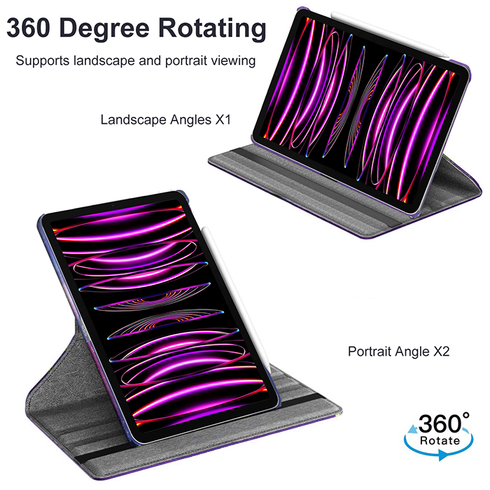 Hülle ist 360 Grad drehbar & verstellbar auf Hoch- oder Querformat, sodass Sie Ihre Inhalte im besten Blickwinkel anschauen können.
