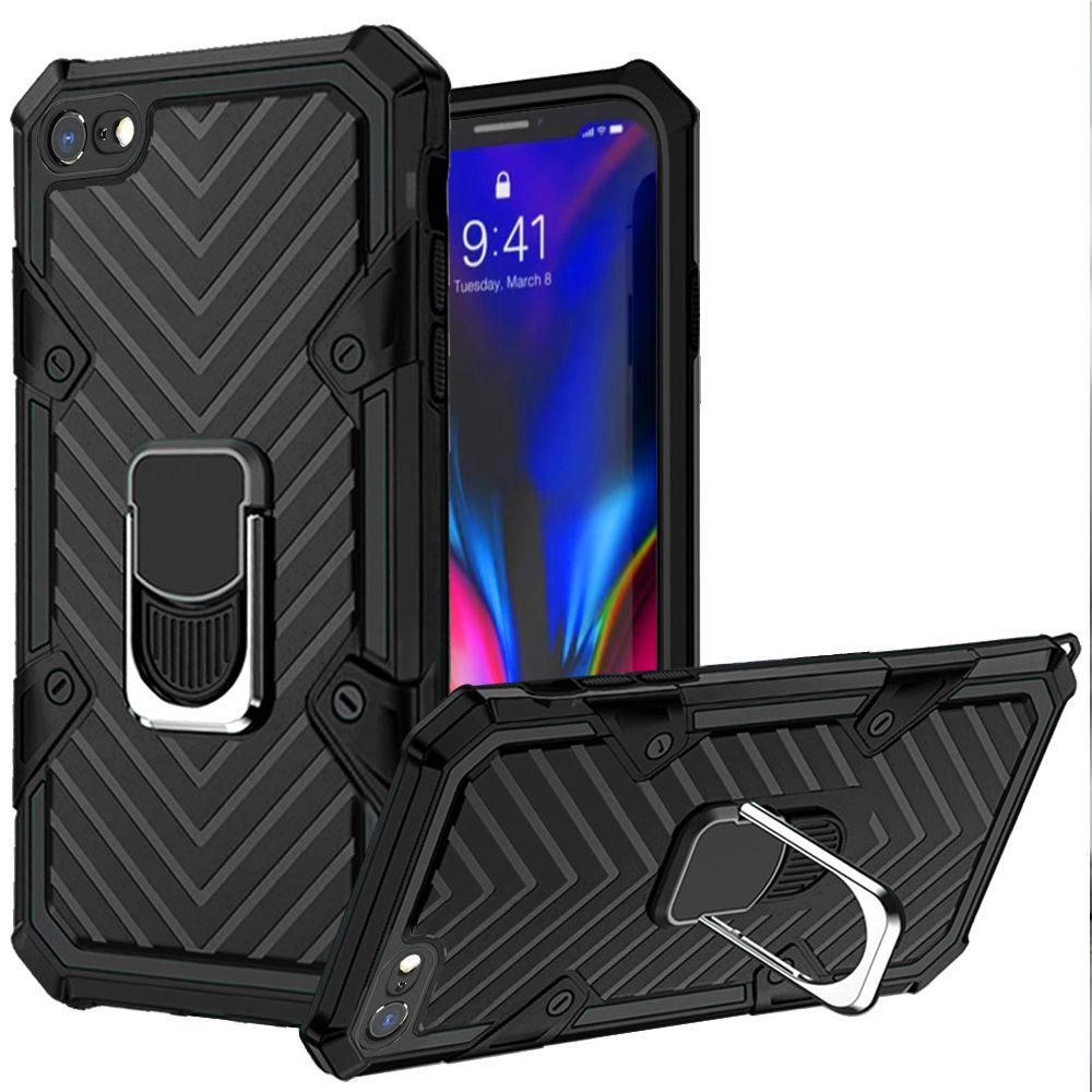 Phone Case for iPhone SE 2020 Military Grade Case with Metal Rotating Ring / Kickstand Holder Armor Heavy Duty Shockproof Drop Protective Drop-Proof, Durable, Non-Slip Double-Layer Plastic TPU Cover Ring Slim Hybrid Sturdy Bumper Frame Support Magnetic Car Mount (Not includes the magnetic car mount holder).