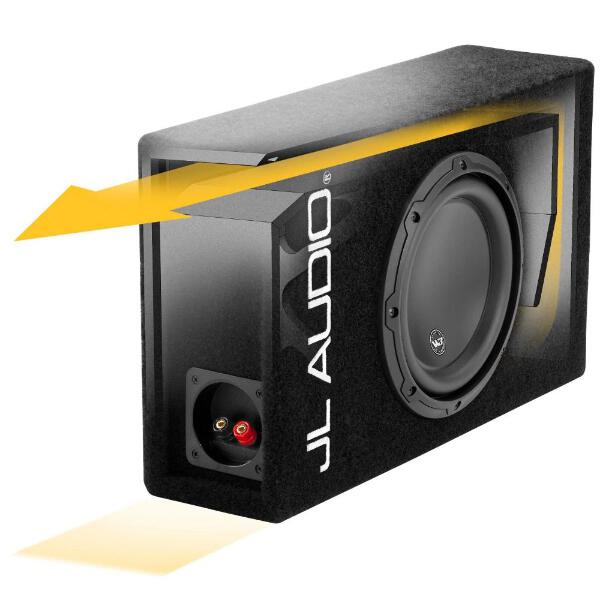 Extensive interior bracing permits the use of thinner wall material that maximizes the enclosure's internal volume relative to its exterior volume. The port wraps around two walls of the enclosure to produce the necessary low tuning frequency that ensures excellent extension and response smoothness. The flared port entry and exit further enhance sound quality by minimizing air-flow noises through the port.