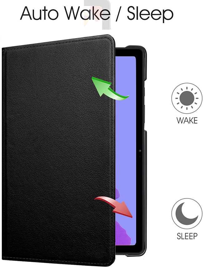 • Auto Schlaf / Wach Funktion - Durch die eingebauten magnetischen Streifen wird beim Öffnen/Schließen der Hülle der Ruhezustand automatisch aktiviert/deaktiviert, um Strom zu sparen.