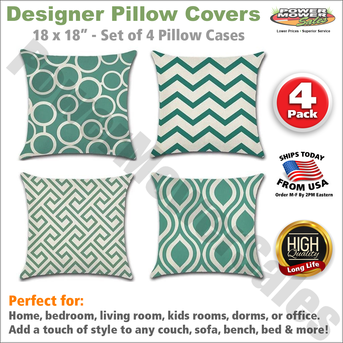 Set of 4 Pillow Cases Cotton Linen Fabric, Geometric Shape Design Themed