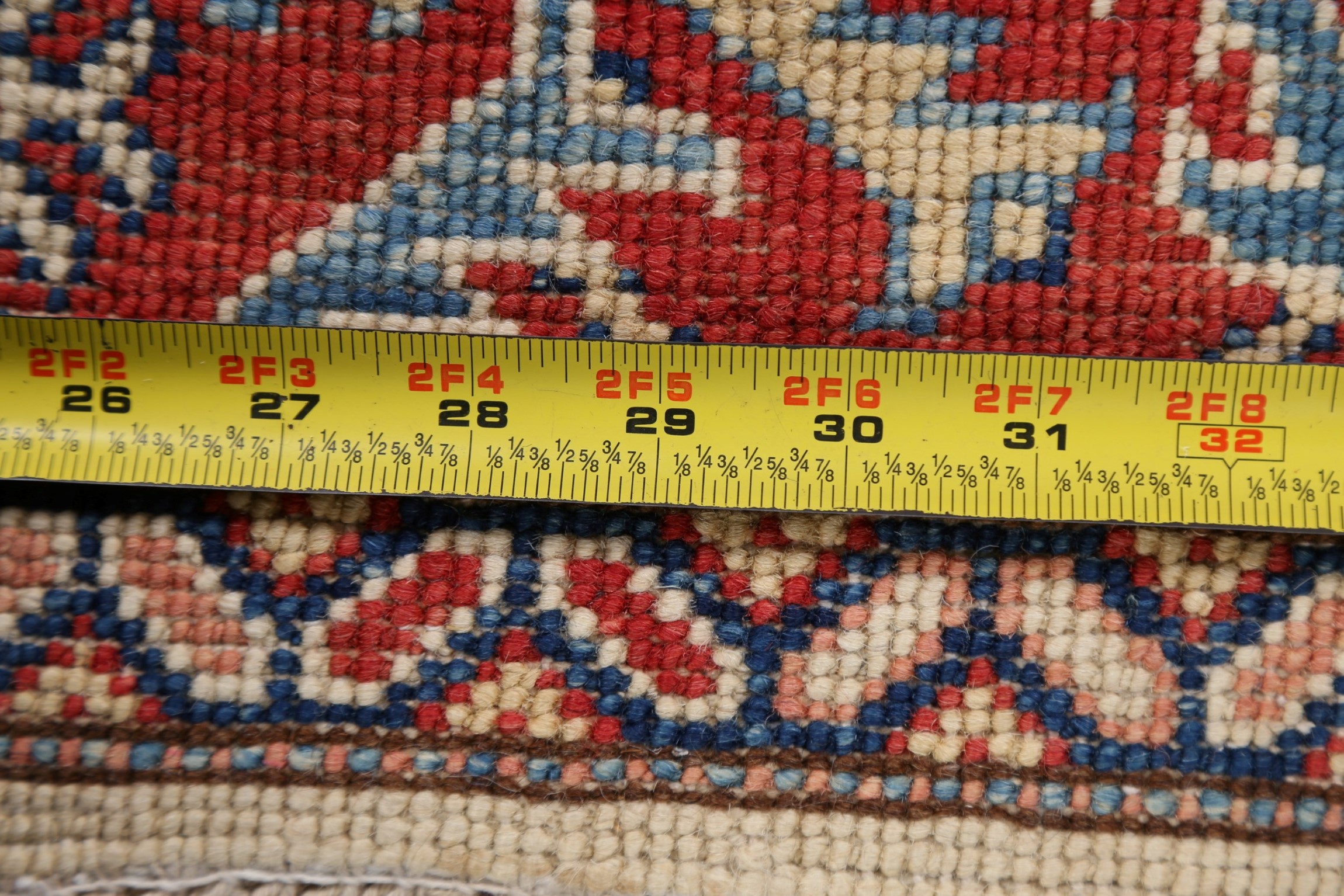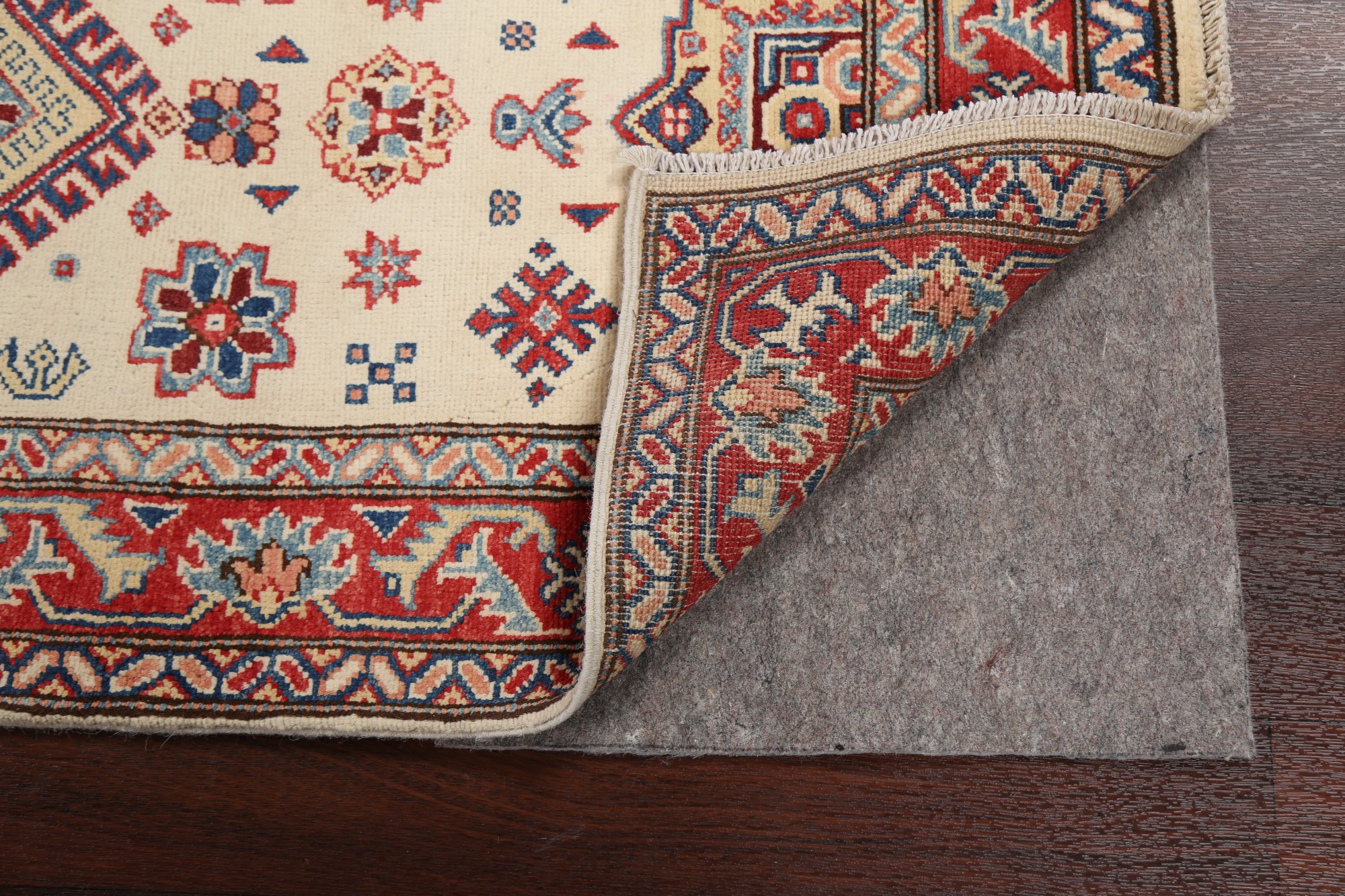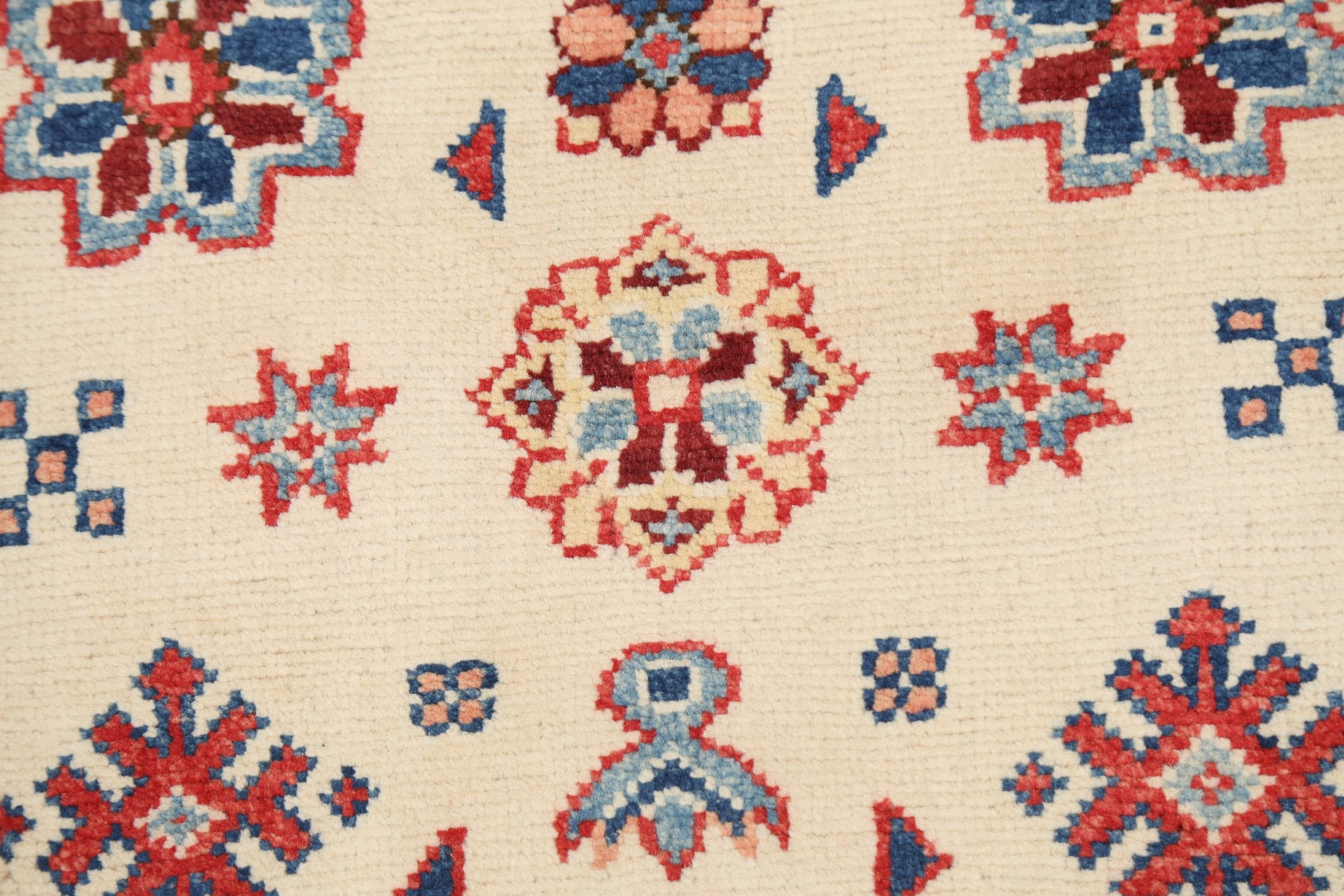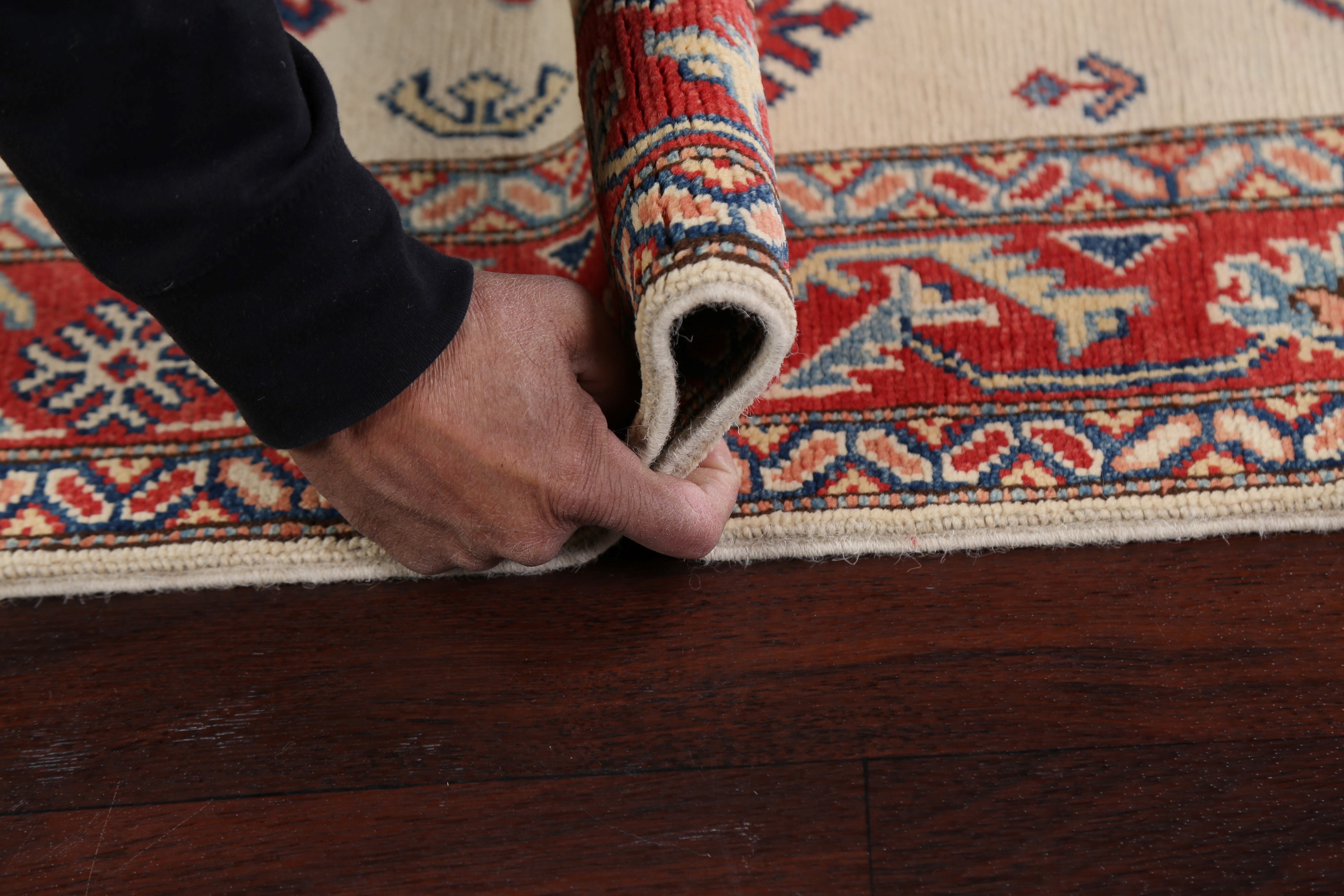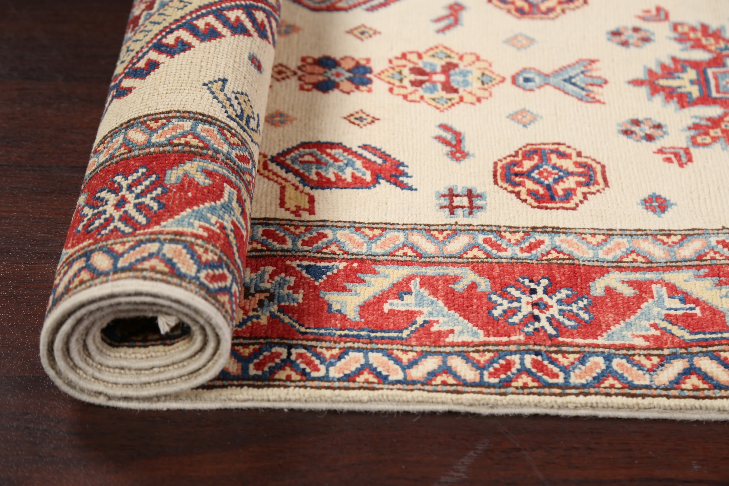 Geometric Ivory Super Kazak Oriental Runner Rug Vegetable Dye Hand-knotted 3x9