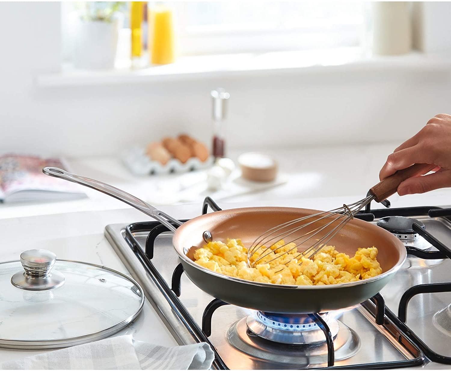 Cera Frying Pan Non Stick Titanium Ceramic Coating Glass Lid Scratch Resistant