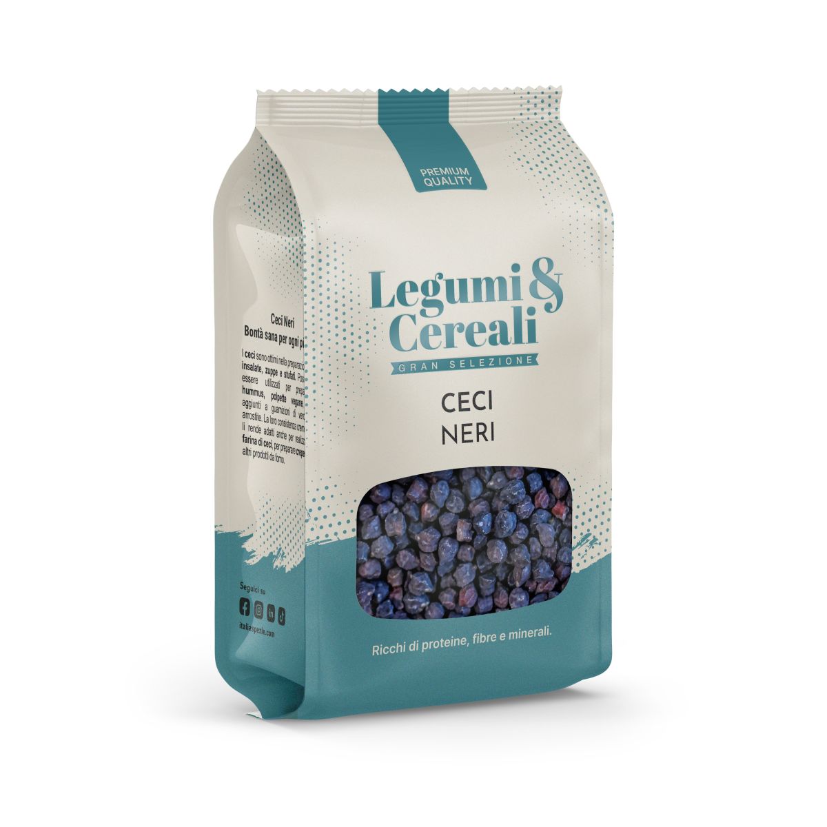 La loro pelle scura è dovuta alla presenza di antociani, pigmenti naturali che conferiscono loro una tonalità intensa e un potere antiossidante. Questi antociani sono gli stessi che colorano mirtilli e melanzane, e conferiscono ai ceci neri non solo il loro aspetto distintivo, ma fanno bene anche alla salute! Sono potenti alleati nella lotta contro i radicali liberi, e ogni porzione fornisce una quantità significativa di proteine, fibre, vitamine (C,K,E, vitamine del gruppo B), e di sali minerali, come magnesio, fosforo e potassio.
