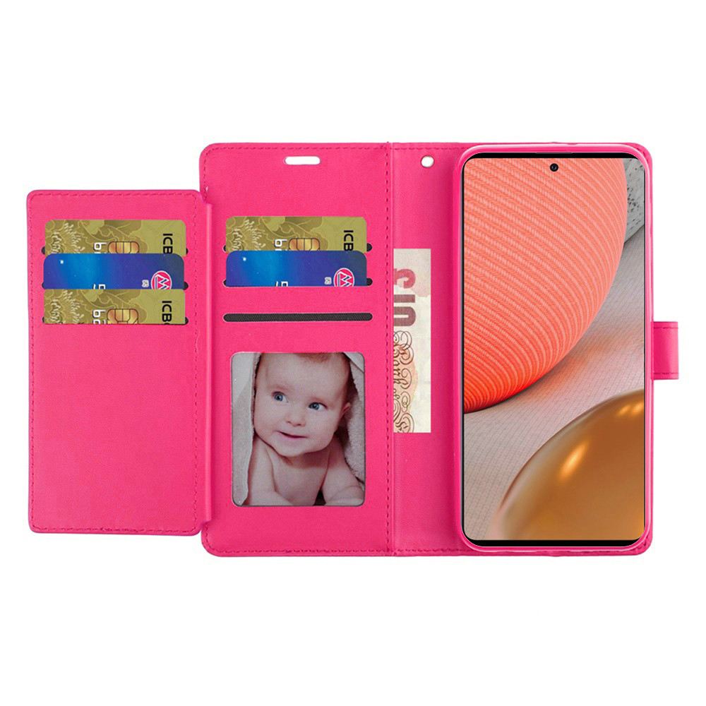 Phone Case for Galaxy A72 5G Premium Synthetic Leather Wallet Pouch Case with Wrist Strap Lanyard and Kickstand, Folio Flip extra Credit Card Pockets Hidden Cash Storage ID Slots Money Holder [Magnetic Closure] Phone Cover.