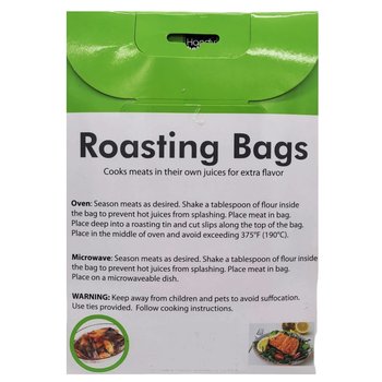 This 5 pack roasting bag set is perfect to use when cooking. Cooking meats in their own juices helps to provide your dish with extra flavor. Perfect for use in cooking chicken, various meats, small roasts, stew, vegetables, seafood and more.