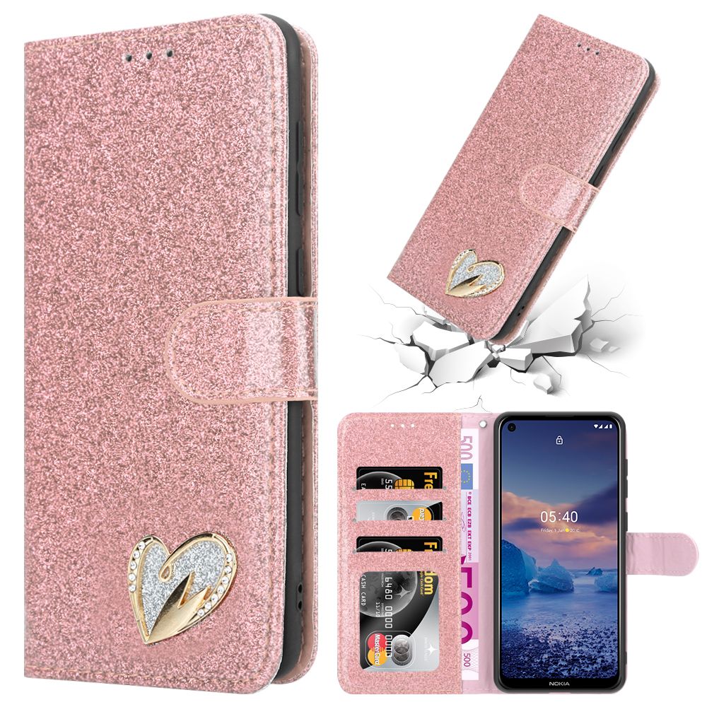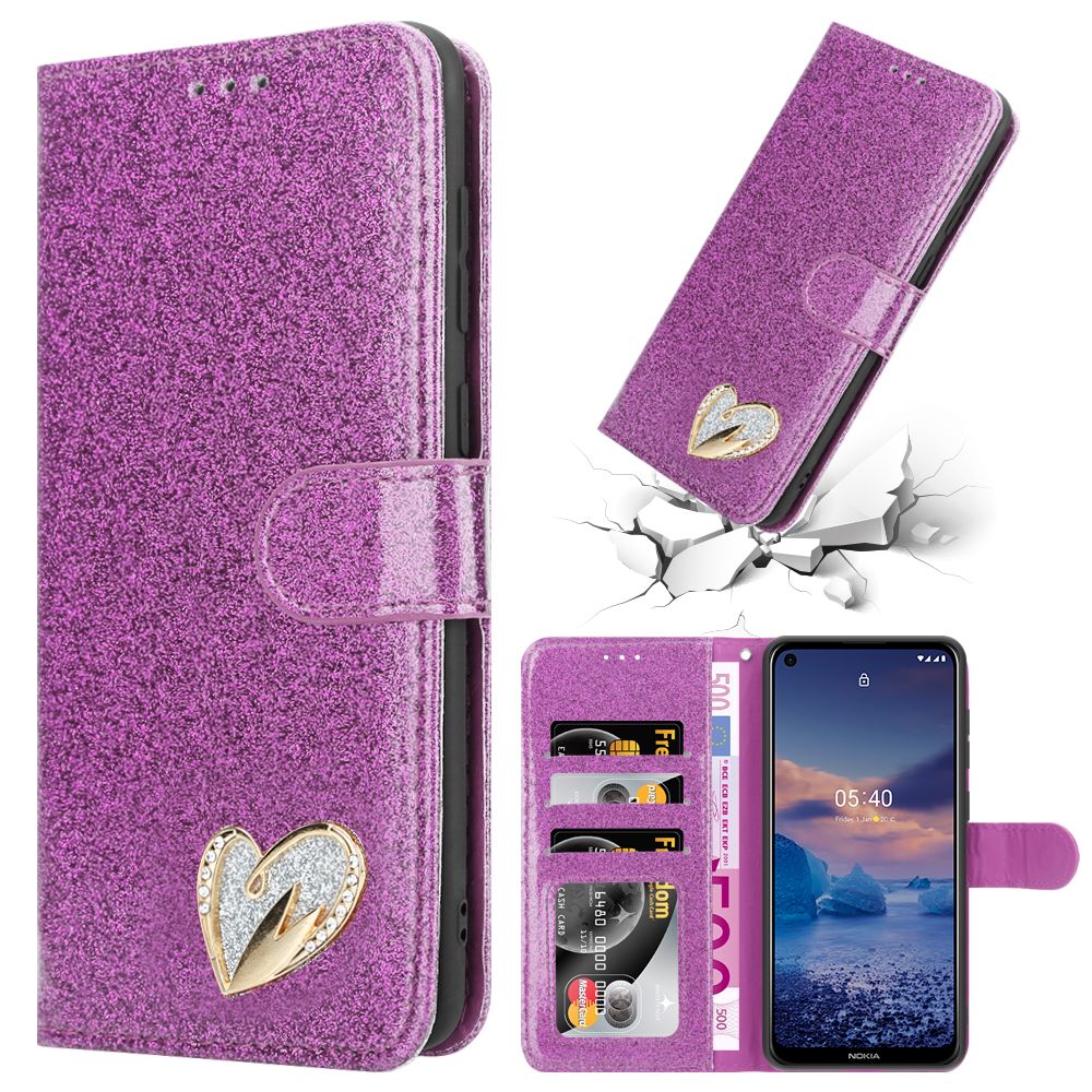 PERFECT FIT: 100% High Quality Shiny PU Leather Case with Soft TPU Holder in Elegant Bling Glitter Colors for NOKIA 5.4 (6.39'') Phone.