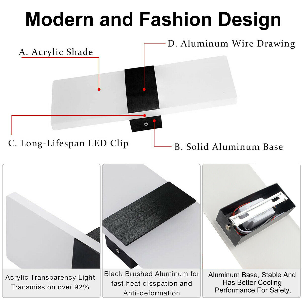 -No ultraviolet or infrared radiation, high brightness LED, low power consumption. Life over 50000 hours, durable, long life