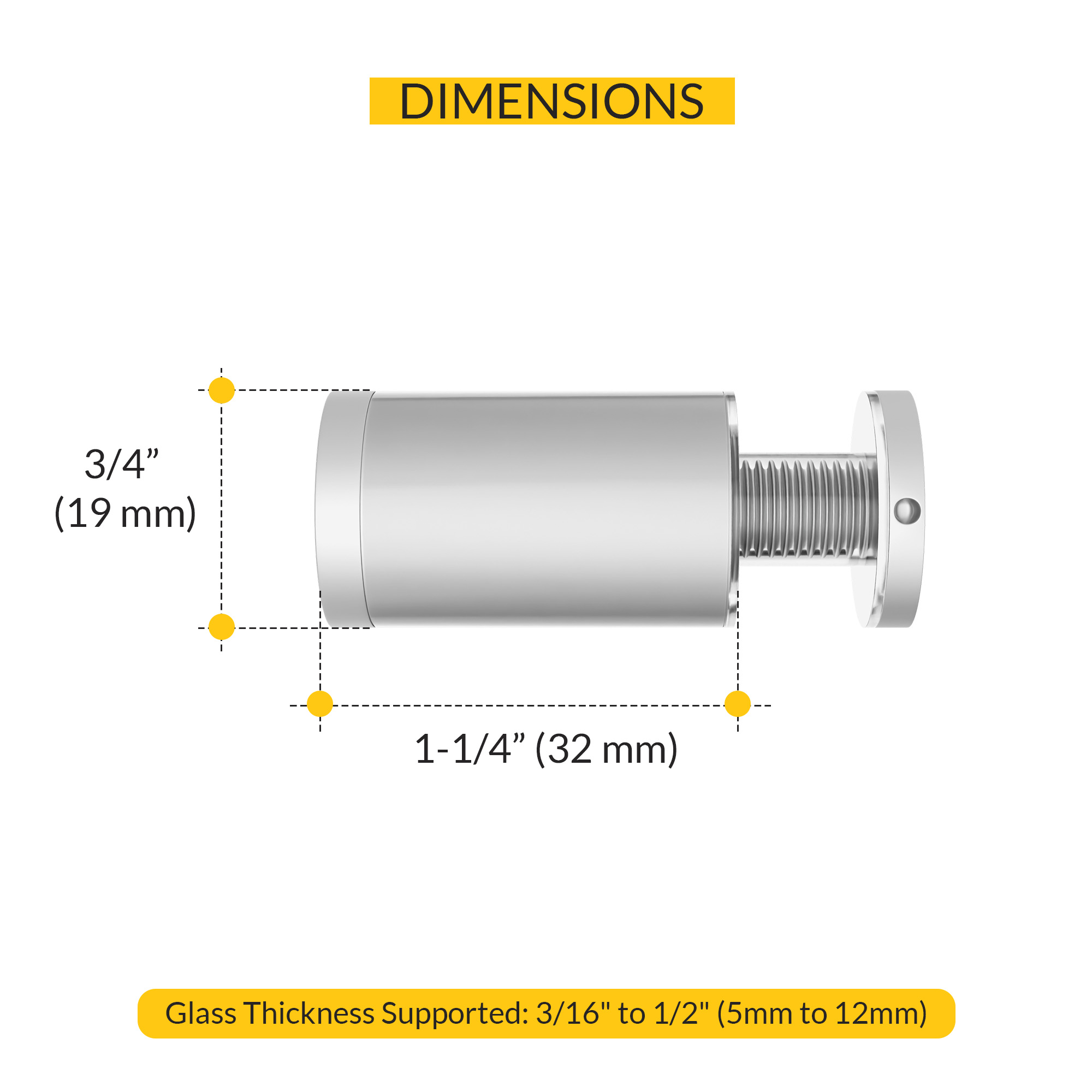 Knob has 3/4" diameter with a projection distance of 1-1/4" from the glass door surface once installed.