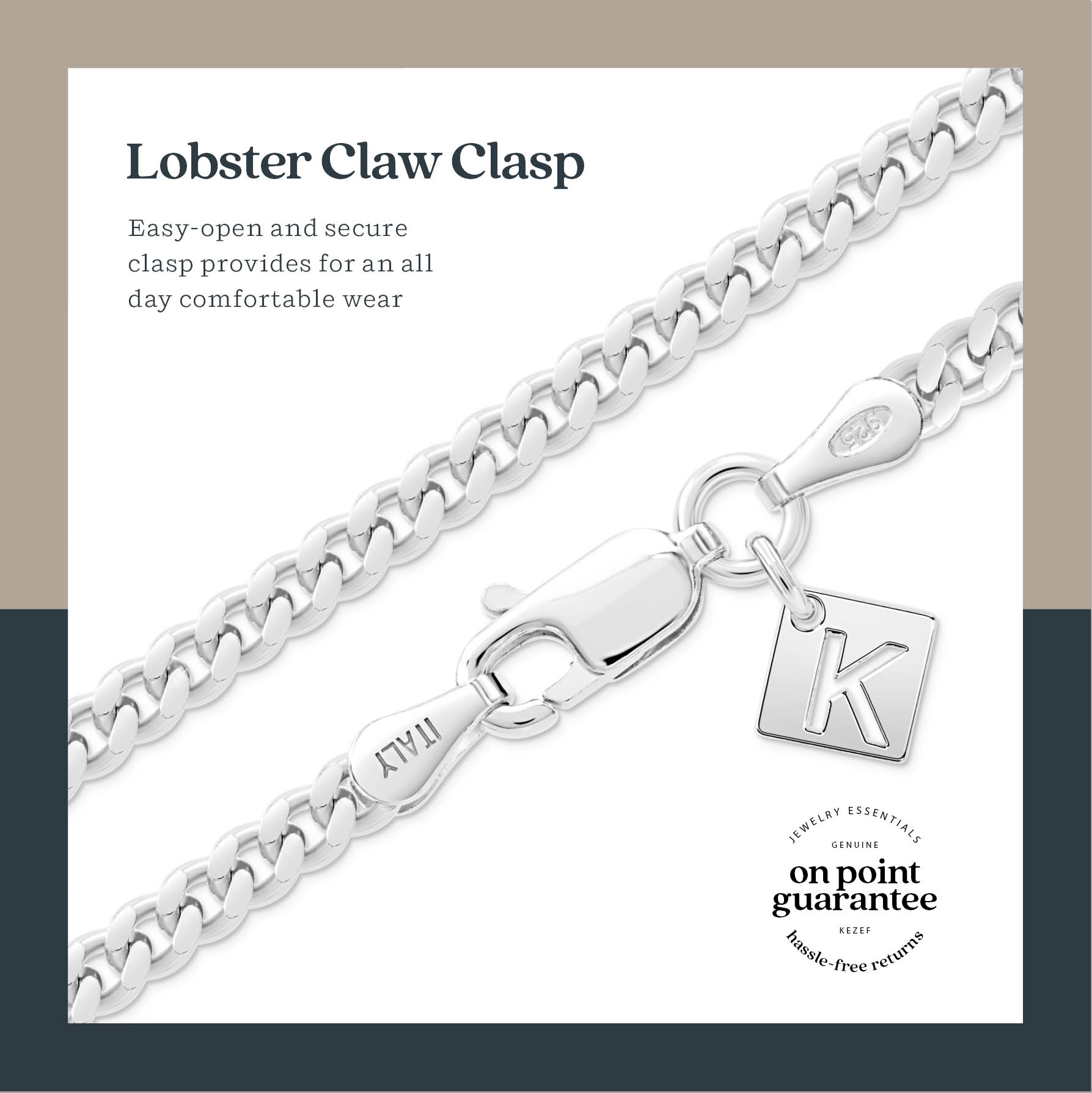 KEZEF brings you the finest Italian craftsmanship with this all-time classic heavy Cuban curb link. These are solid 925 sterling silver chains and treated with a patented treatment to prevent tarnish and maintain its shine and luster for years. The heavy gold plated necklace chains is the perfect addition to your men’s jewelry wardrobe. Available in several lengths, this chains closes securely with a lobster clasp to ensure a comfortable and secure fit. Accent your look with the striking, yet sleek design of a men's Miami cuban necklace for men. This elegantly handsome, Italian link features a contemporary Miami cuban link necklace for men, crafted in luminous 925 sterling silver for today's modern gentleman. Product Features: Relax in a hot bath tub, take a cold shower or have a water balloon fight with your friends without worrying about your chain! Rest assured your sterling silver necklace for will look stunning all day every day without turning green, yellow, or orange. Enjoy a hot summer's day at the beach, a soothing sauna session with your partner or cook a delicious BBQ for your family while still wearing your necklace! Go for a workout at the gym, a football match with your mates, or wrestle with your siblings with your mens chains gold necklaces remaining unharmed. Product Benefits: Give a modern urban edge to a casual t-shirt, hoodie or formal outfit. Wear solo for an everyday polished look or add a favorite pendant or charm for a cool personal statement. Extremely durable for long term every day wear. Ultimate Gift: Perfect for yourself or as a gift - be it Father’s Day, a birthday, anniversary or just to say I'm thinking of you. Packaged in neat gift box - the perfect present for your husband con father or boyfriend Mother, Sisters, friends. KEZEF guarantees your satisfaction - we stand behind your purchase with our renowned On-Point Guarantee.