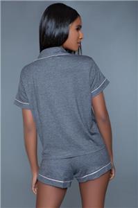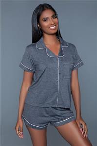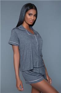 - Description: 2 piece jersey pajama set includes a short sleeve button down top with contrast piping detail and front pocket and matching stretch waist shorts.