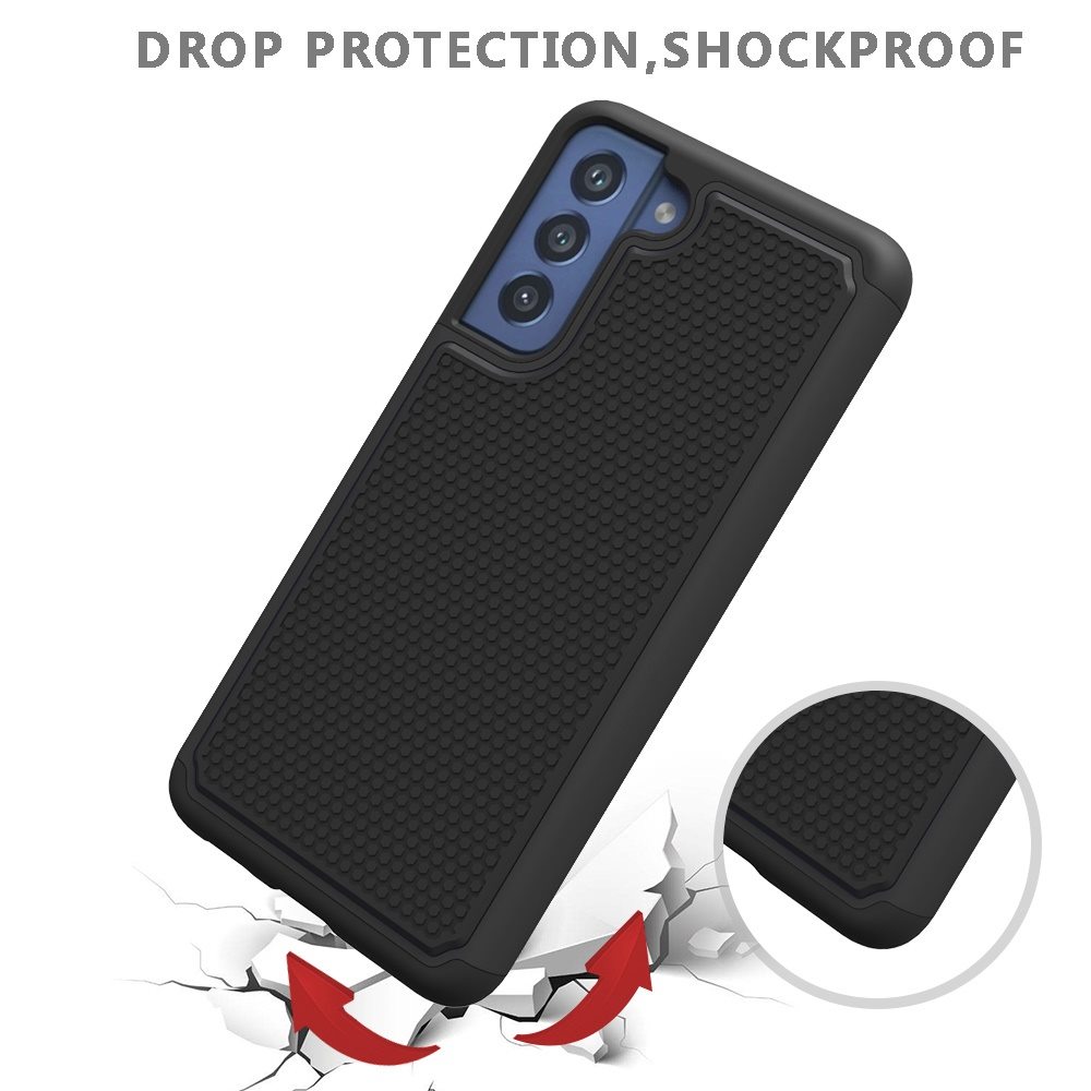 Phone Case for Galaxy S21 Fan Edition /S21 FE Hybrid Dual Layer Textured Fused Case Absorbing Anti-Scratch Rugged Bumper Armor Defender Heavy Duty Back Body 2in1 Hard Plastic PC & Soft Rubber Silicone TPU Protective Case Cover.
