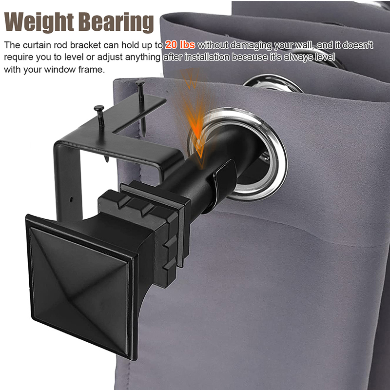 The Hang curtain rod holders are able to hold up to 20 lbs of weight without damaging your walls, and won't require you to level or adjust anything after installation as it'll always be as level as your window frame.