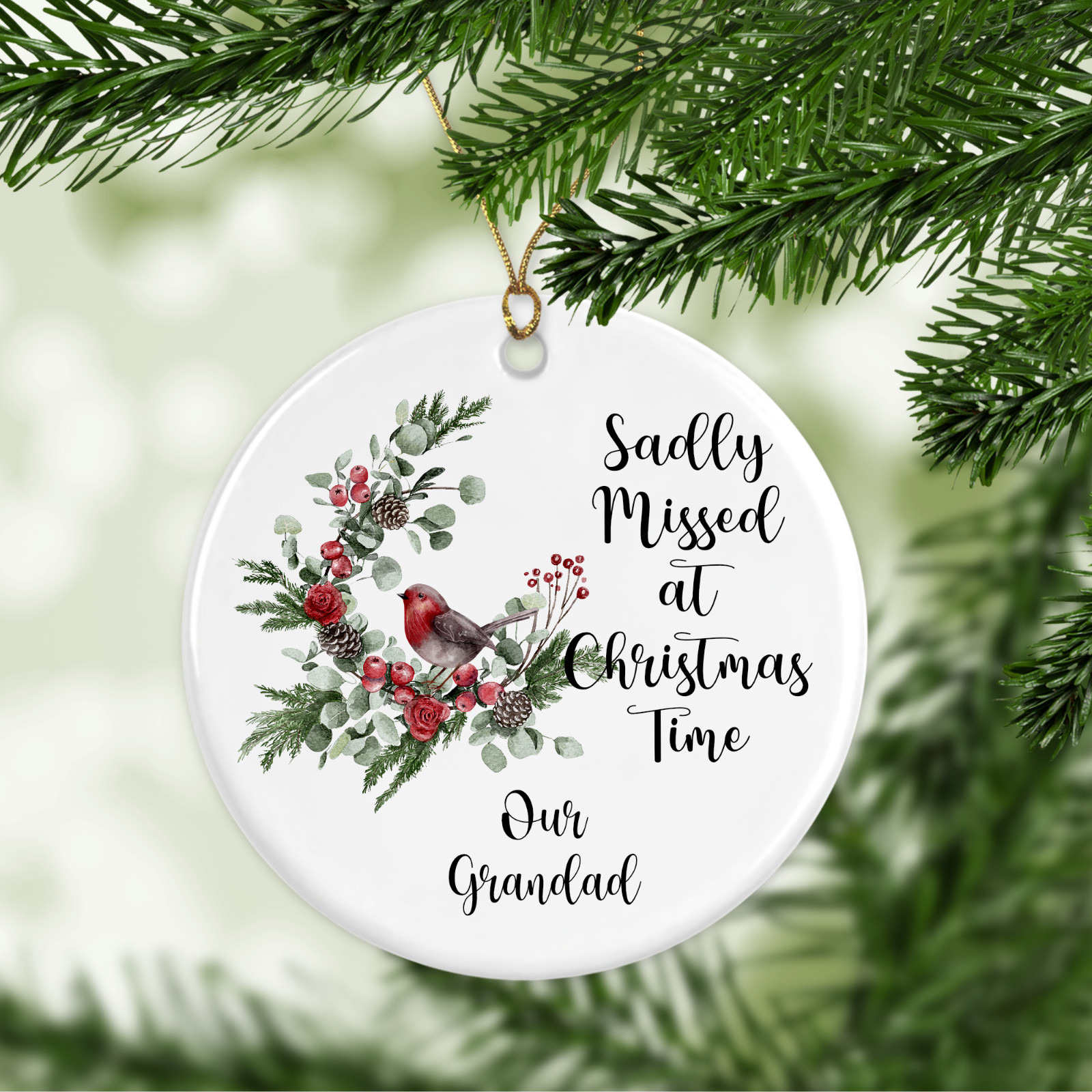 Personalised Sadly Missed Design Christmas Ceramic Ornament