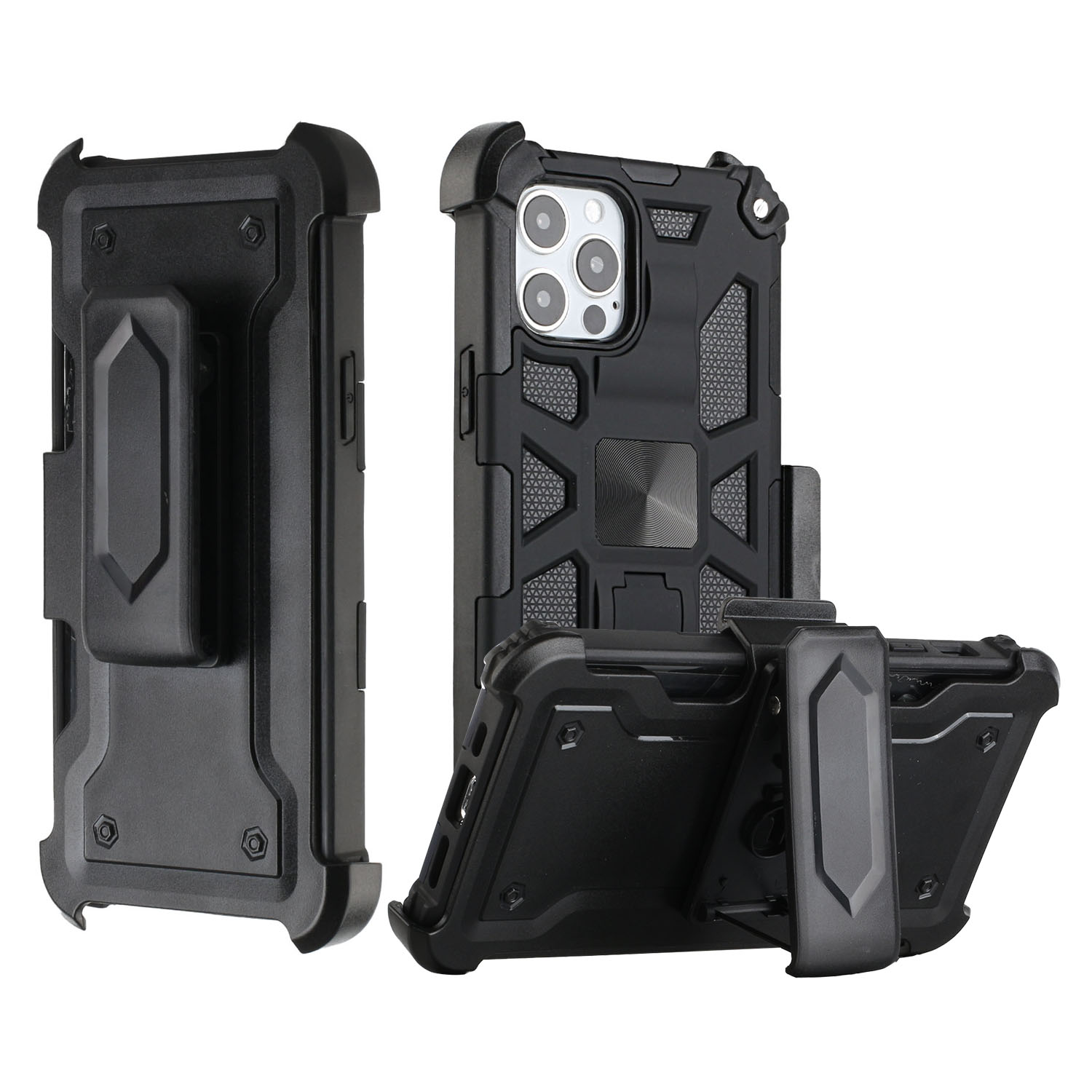 Phone Case for iPhone 13 Pro Max / 6.7" Machine 3 in 1 Combo Swivel Holster Clip Case Heavy Duty Shockproof Full Body Protect Kickstand Phone Cover [Compatible with Magnetic Car Mount Holder]