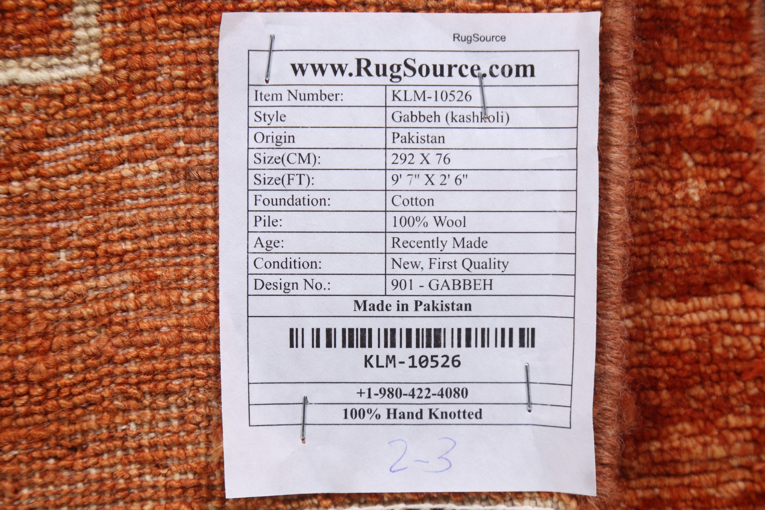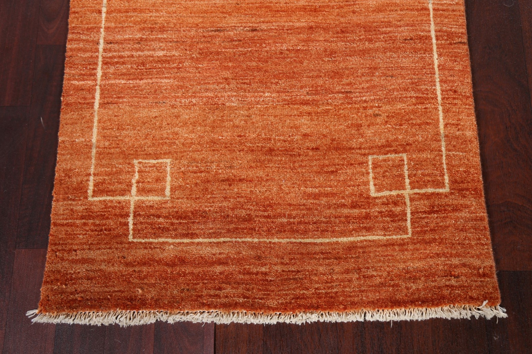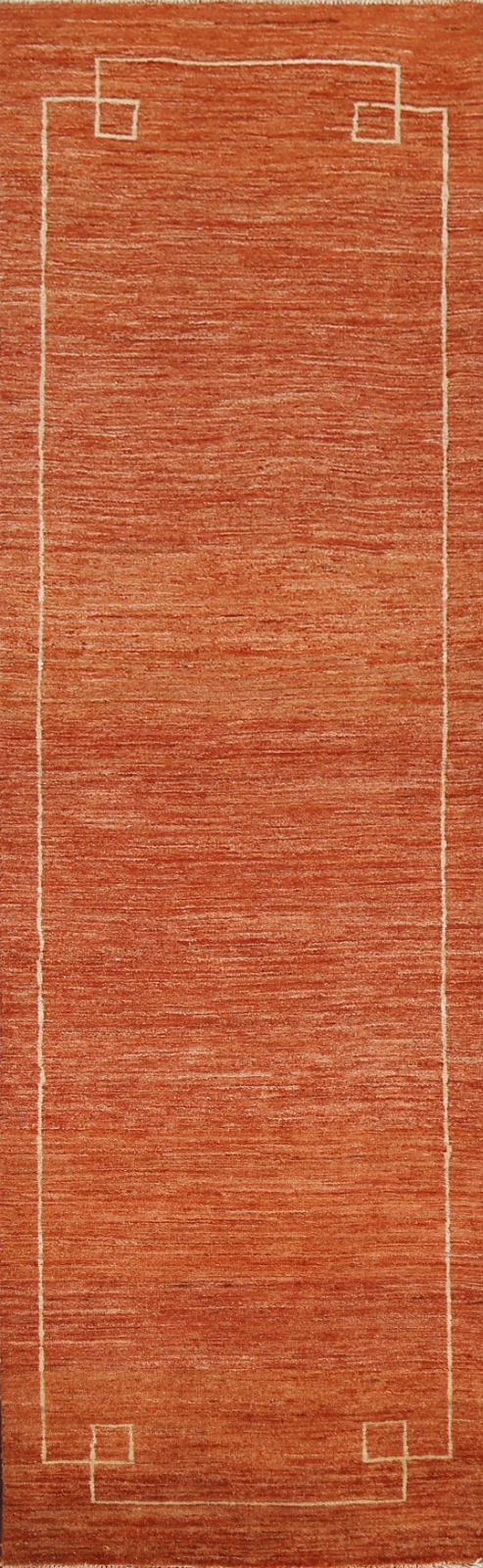 Bordered Gabbeh Contemporary Oriental Runner Rug Hand-knotted Wool 2' 6" x 9' 7"
