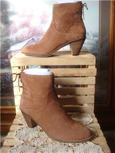 These Lucky Brand tan nubuck leather ankle boots come from a smoke-free home!