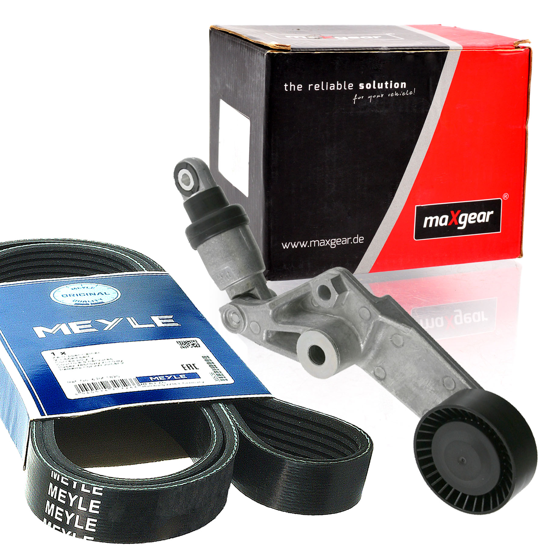 1 Stk. MAXGEAR (54-0567) Riemenspanner Keilrippenriemen Außendurchmesser [mm]: 70 mm Breite [mm]: 26 mm 1 Stk. MEYLE (0500061560) Keilrippenriemen Länge [mm]: 1560 mm Rippenanzahl: 6 Material: EPDM (Ethylen-Propylen-Dien-Kautschuk)