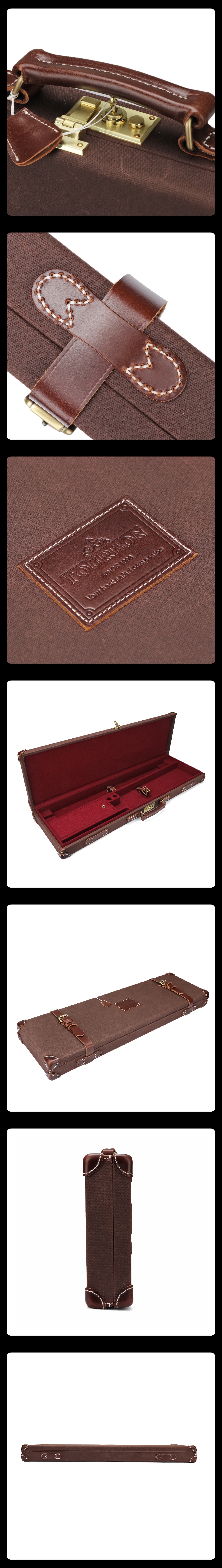 The classic English toe-under design enables this case to hold the gun securely and at the same time is much more compact and lighter than a traditional case. The durable canvas is 100% cotton and trimmed with harness leather. The inside is lined in traditional burgundy wool felt with no exposed hardware or screws to damage your firearm. Hardware is solid, heavy brass (not plated).The barrel compartments can be adjusted by filling them up with spacer blocks. So it can fit 28 inches, 30 inches, 32 inches 12GA or 20 GA shotgun barrel.
