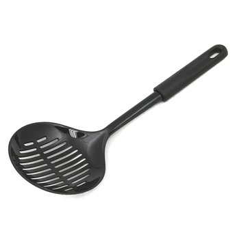 It's perfect to use with pans that have a non-stick coating that you don't want to damage. You will reach for the Chef Craft Basic Nylon Skimmer with its comfortable plastic handle day after day. The black working end will not stain no matter what foods you cook.