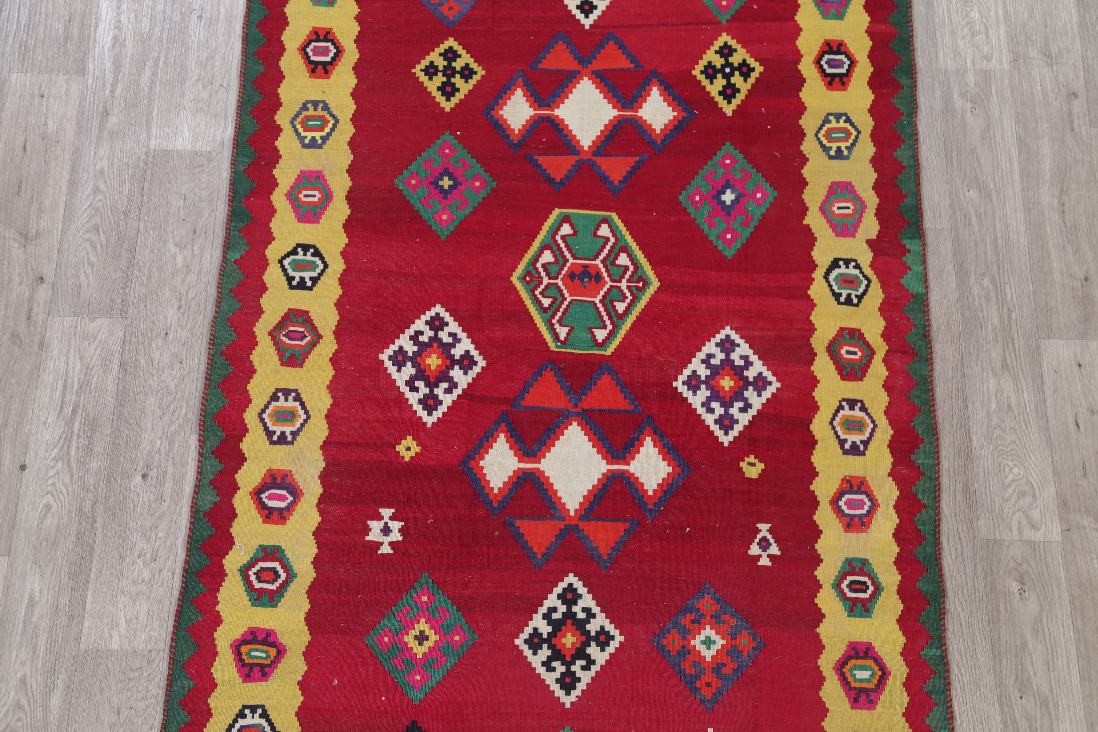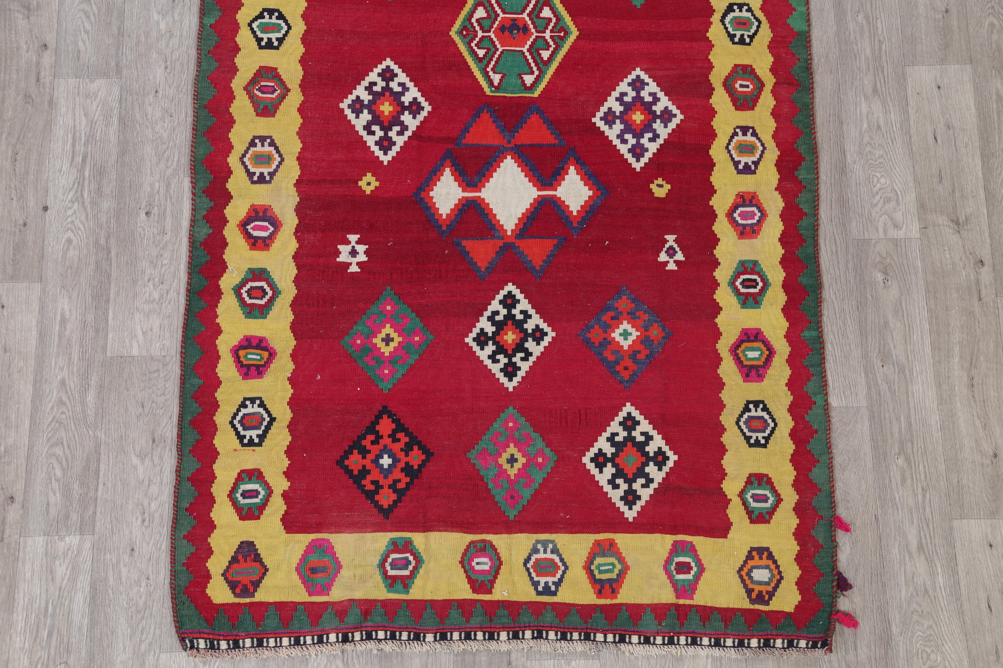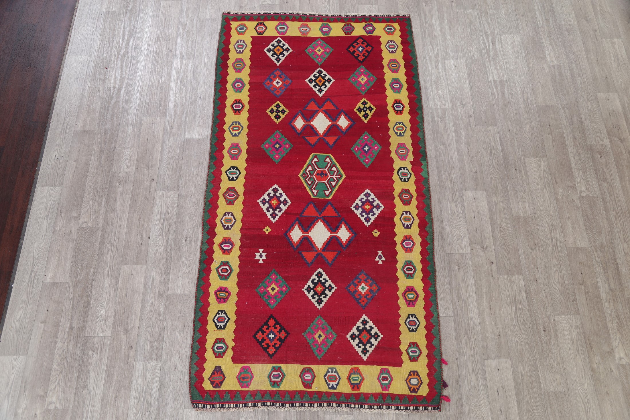 Vintage Geometric Kilim Tribal Oriental Runner Rug Reversible Hand-Woven 4x9 ft